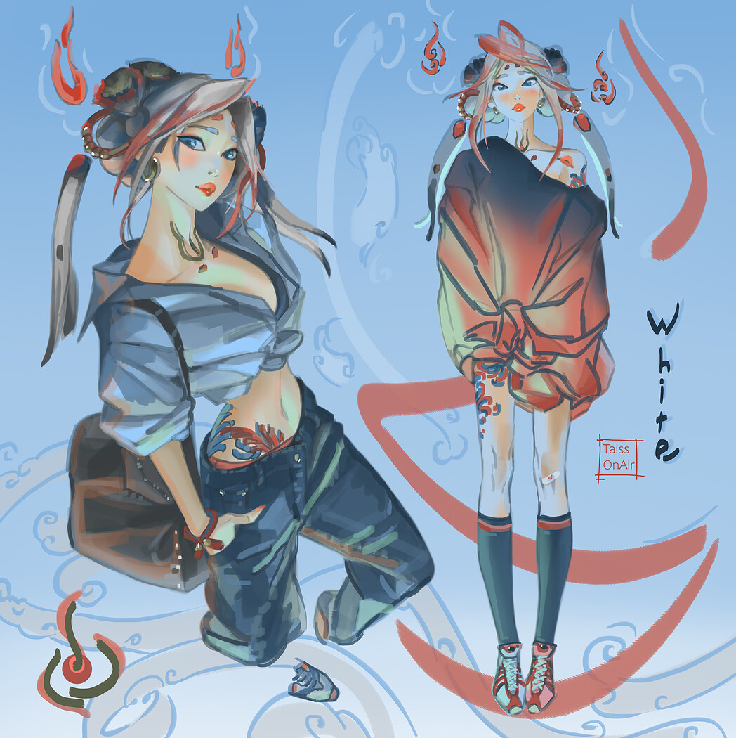 White, character design.