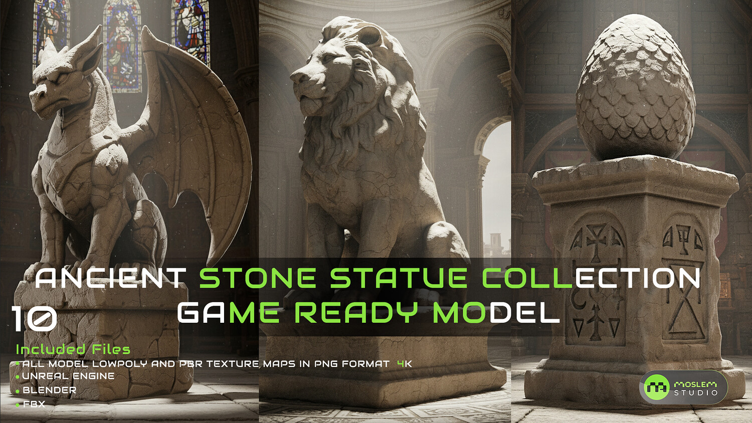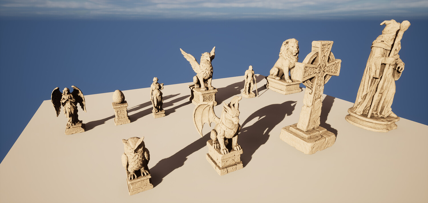 Ancient Stone Statue Collection – 10 Game-Ready Models