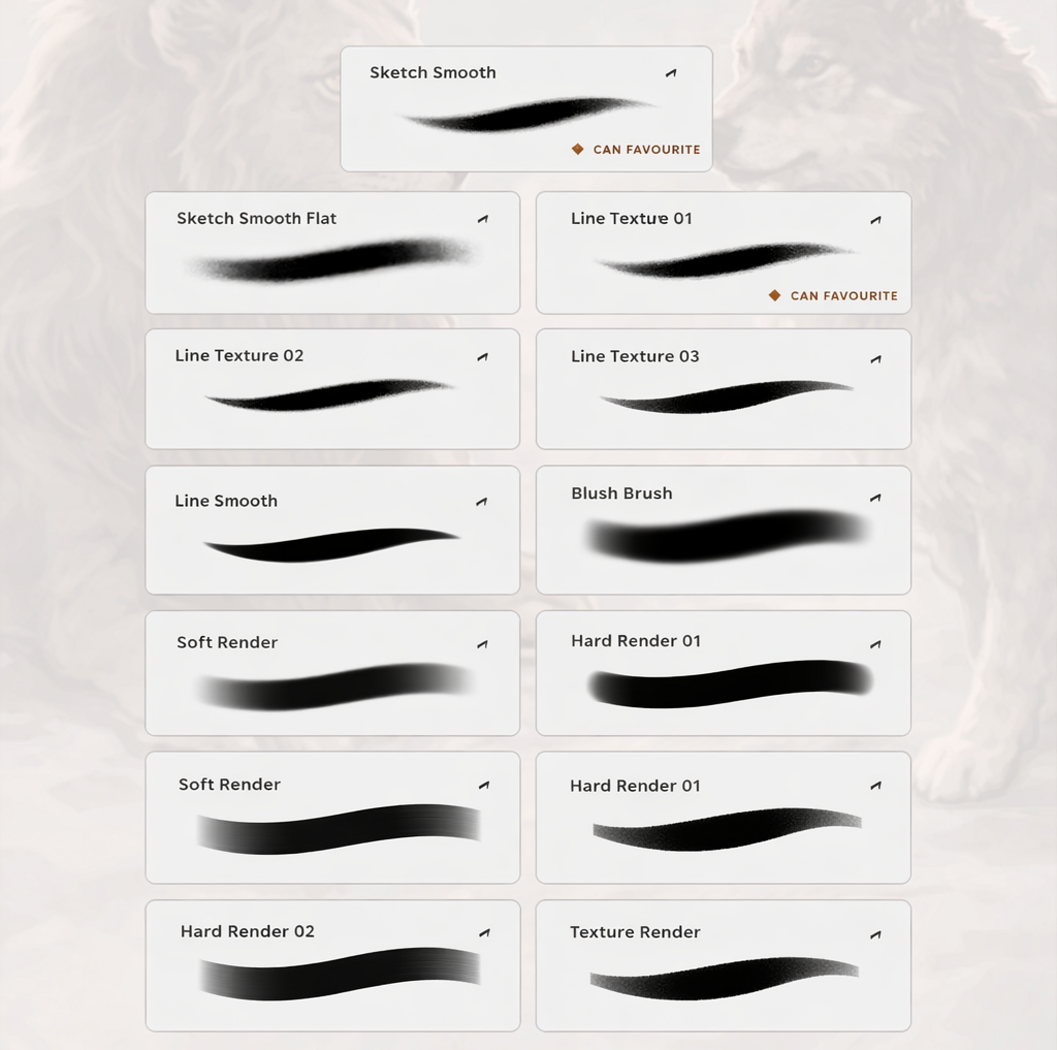 Each brush is carefully optimized to feel natural and responsive, giving you smooth strokes, clean pressure sensitivity, and consistent performance whether you’re working fast or refining details. This pack is ideal for beginners building their toolkit and professionals who want dependable brushes they can use daily.