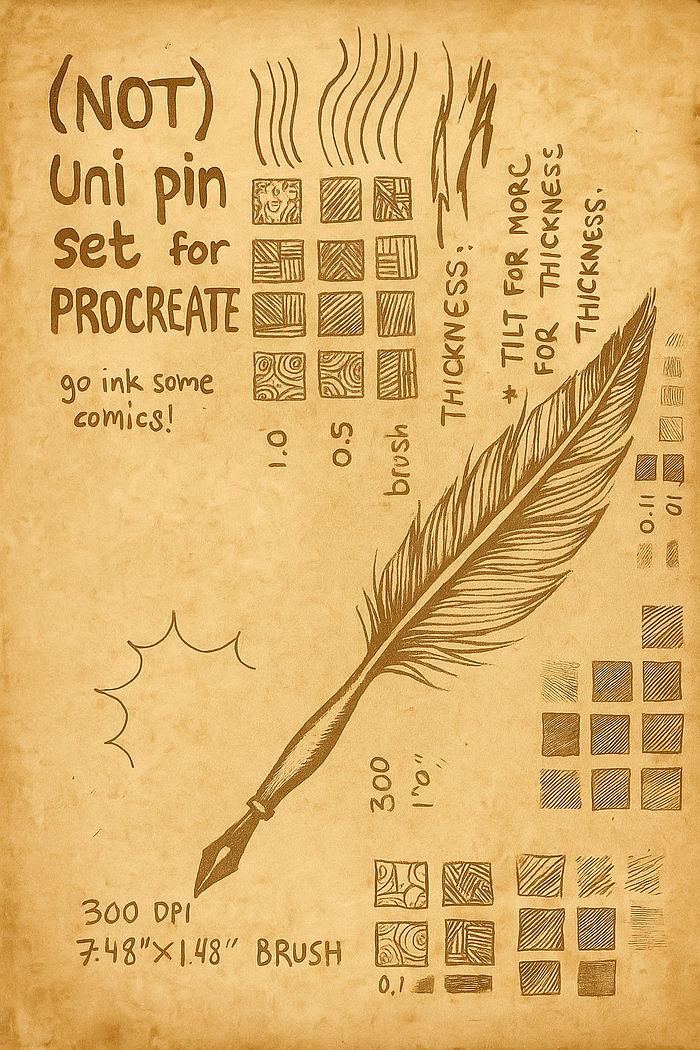 Bring the timeless elegance of traditional ink drawing into your digital art with Feather Pin, a handcrafted brush set inspired by the precision and feel of Uni Pin fine liners. Designed especially for Procreate, this set captures the nostalgic charm of real pens — perfect for comic artists, illustrators, and sketch enthusiasts who crave authentic inking textures.
