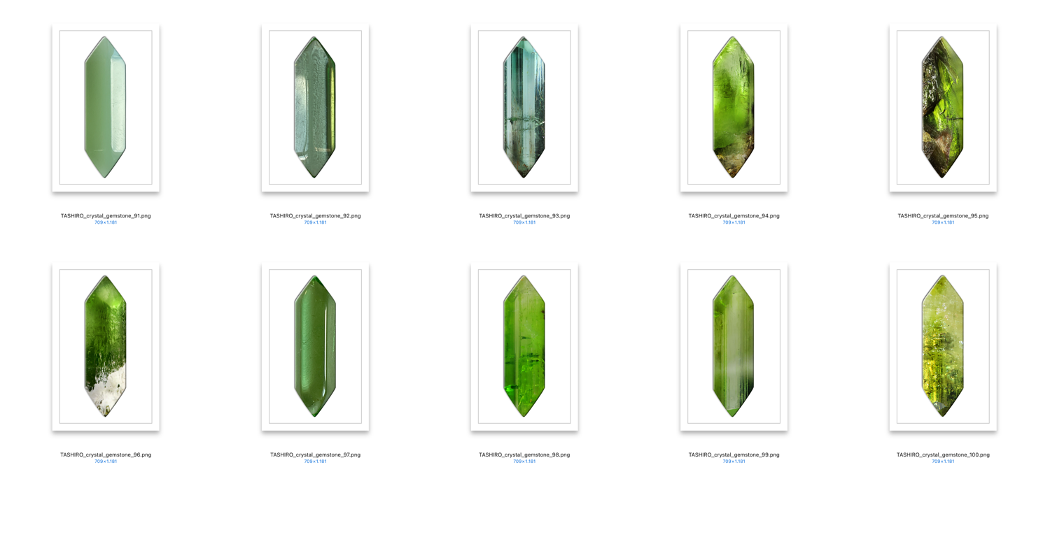 The TASHIRO GEMSTONE LIGHT GREEN PACK consist of: