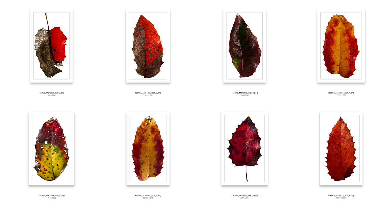 1 Zip File 5 unique PNG files minimum 1300 - 1700 Pixels 300 DPI Mahonia leafs. Perfect for print and digital use. Easy to integrate into any design software!