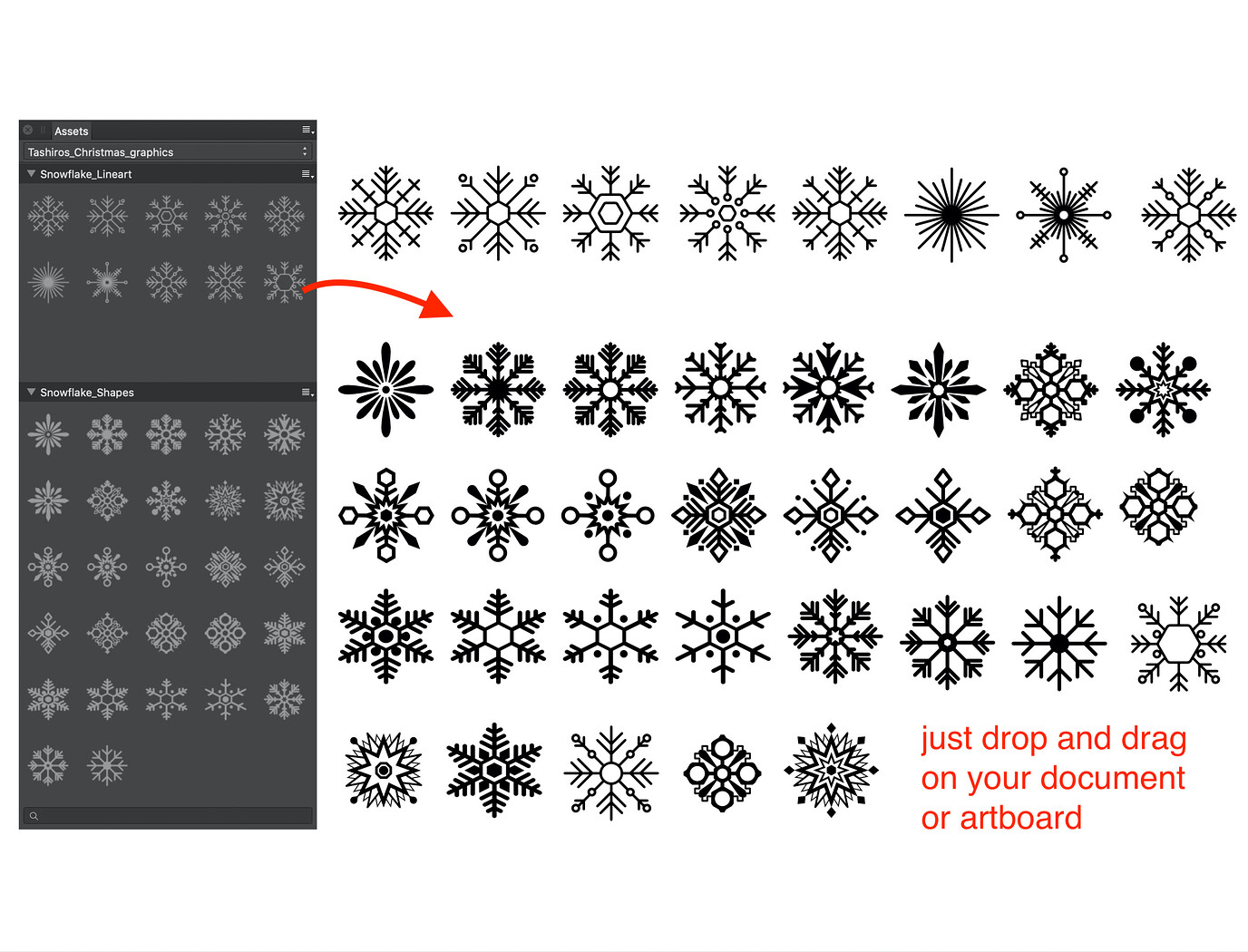 These GOLDEN SNOWFLAKE ASSETS is created for the application Affinity Designer and can also be used as assets in Affinity Photo and Affinity Publisher too or other vector-based applications. Just open the applications Affinity Designer/Photo or Publisher. Go to menu • view • Assets. In the panel Assets, you can open on the right pop-up menu Assets import. Choose the file Tashiro_snowflake.afassets! Have fun! Please leave me a review.