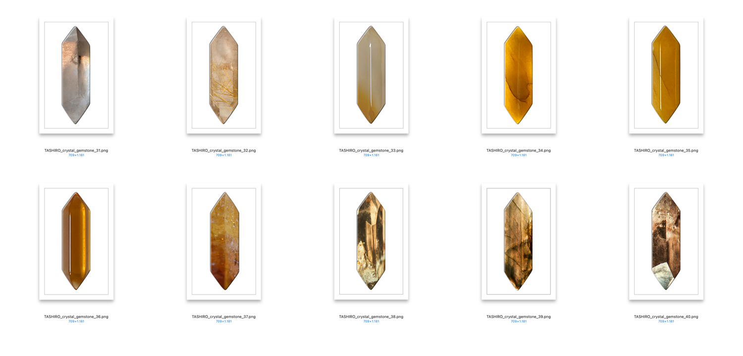 Discover the subtle magic of natural crystal aesthetics with this exclusive set of 10 handcrafted gemstone PNGs. Each crystal has been carefully created without AI, preserving authentic textures such as natural blurs, fine cracks, light refractions, and organic imperfections. These details capture the true character of real gemstones, offering shimmering reflections, tactile surfaces, and an elegant translucency. Unlike artificial or over-polished assets, these gemstones radiate authenticity and bring a touch of raw yet refined beauty into your creative work. With their double-pointed forms and consistent shadows, they integrate seamlessly into any design, whether you are crafting mystical branding, editorial layouts, mood boards, or enchanting digital artworks or games.
