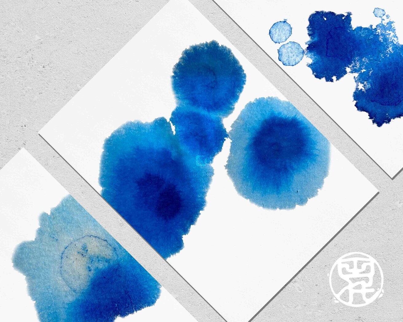 Inspired by Picasso's blue period, I have created 43 blue ink washes for you.