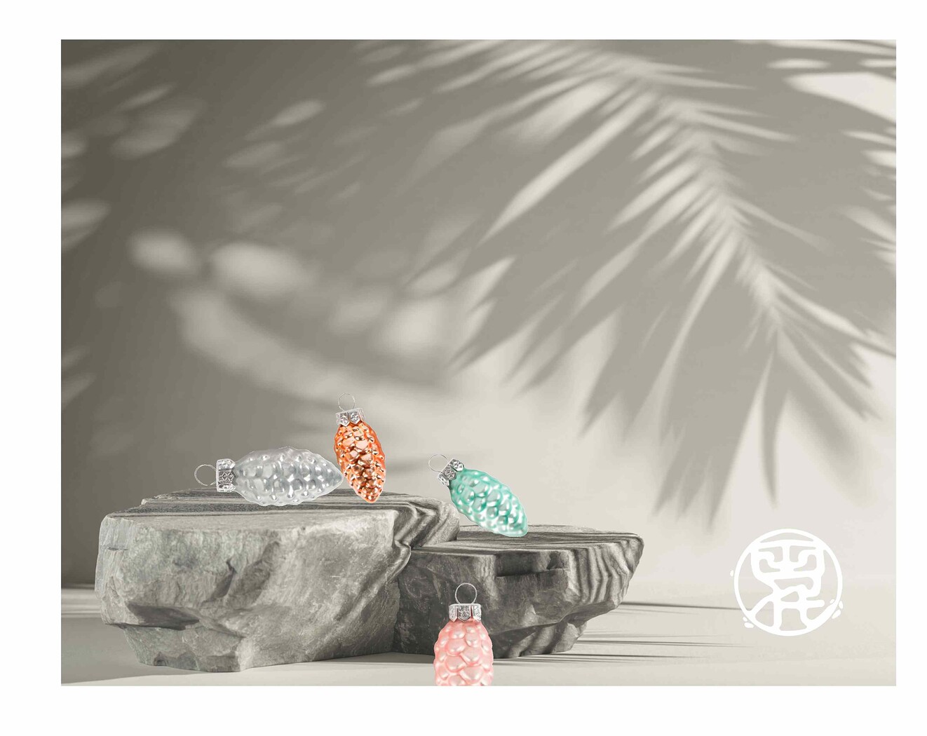 TASHIRO'S 4 CHRISTMAS ORNAMENTS PINECONE