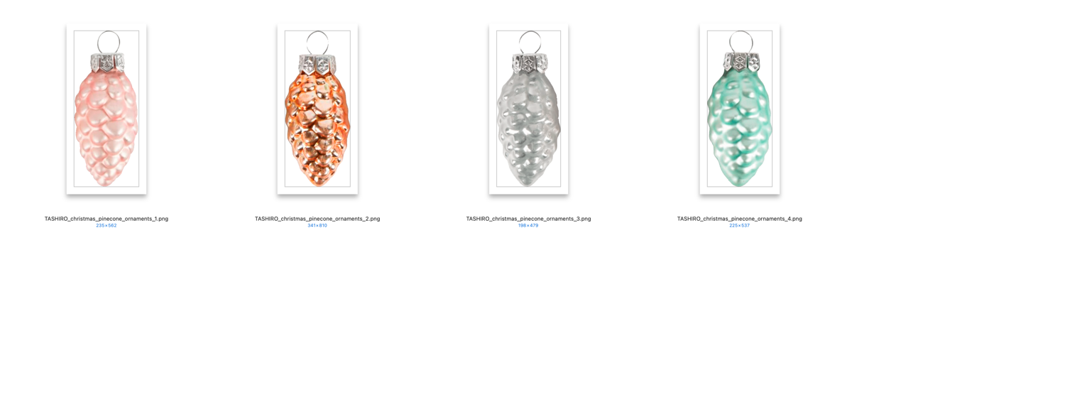 This pack consists of: 4 cut-out PNG Christmas ornaments pinecone in 300 x 300px with 300 dpi