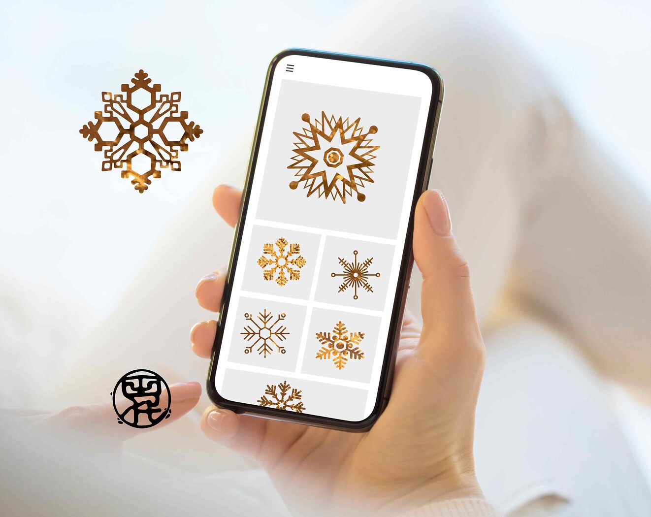 • 1 SVG file with all golden snowflakes