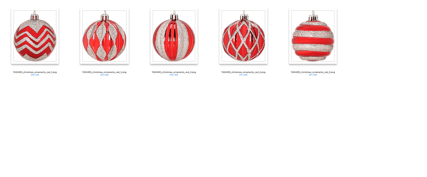 This pack consists of: 5 cut-out PNG Christmas ornaments red in 300 x 300px with 300 dpi