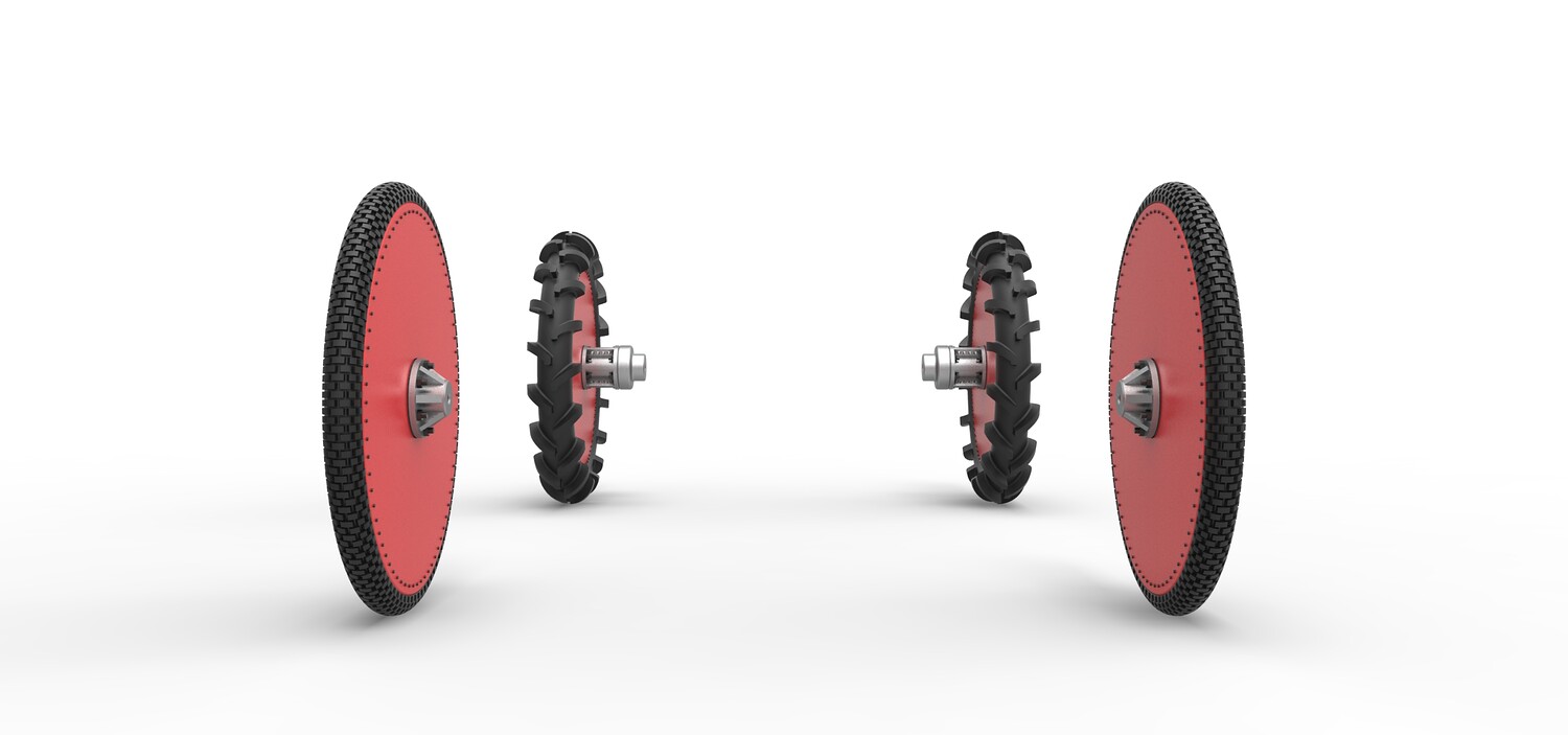 Model dimensions: - Front wheel outer diameter - 56 mm - Front wheel width - 4 mm - Rear wheel outer diameter - 64 mm - Rear wheel width - 12 mm