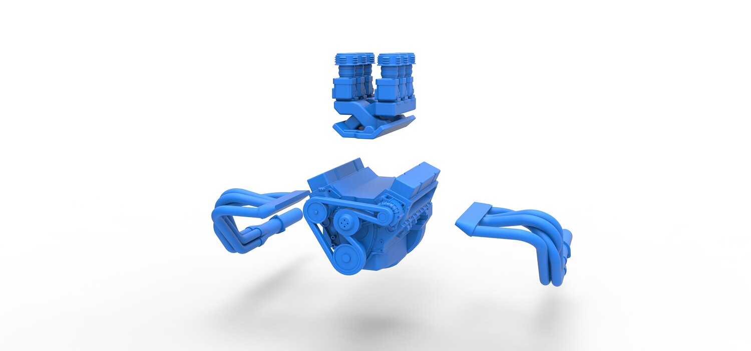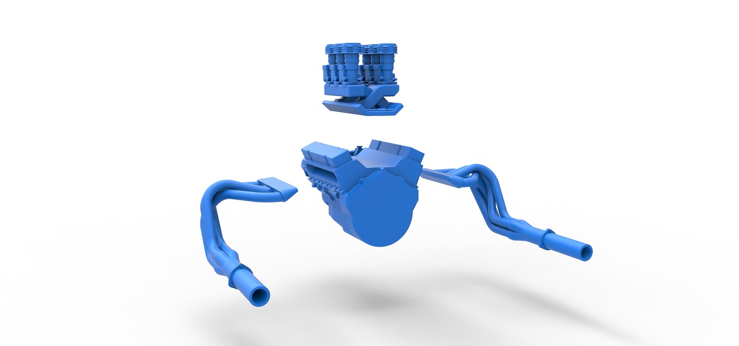 Engine of Vintage Supermodified stock car V2 Scale 1:25