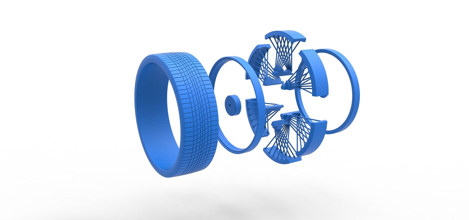 The model consists of parts: Front cap, Rear cap, Rings, Sectors, Tire.