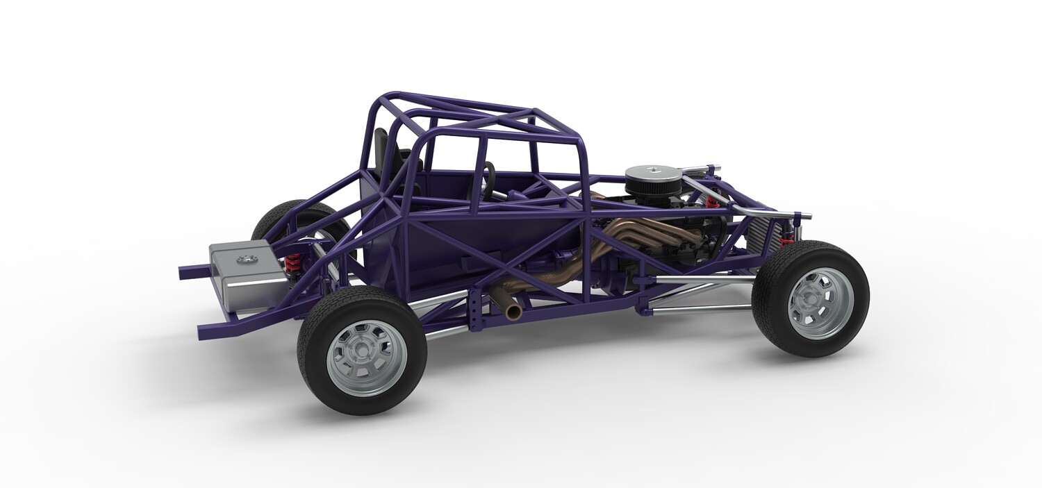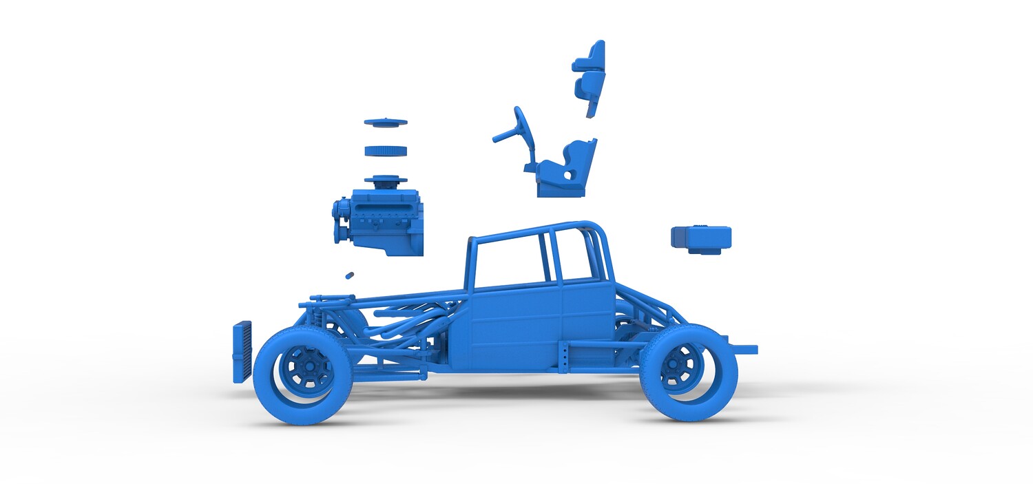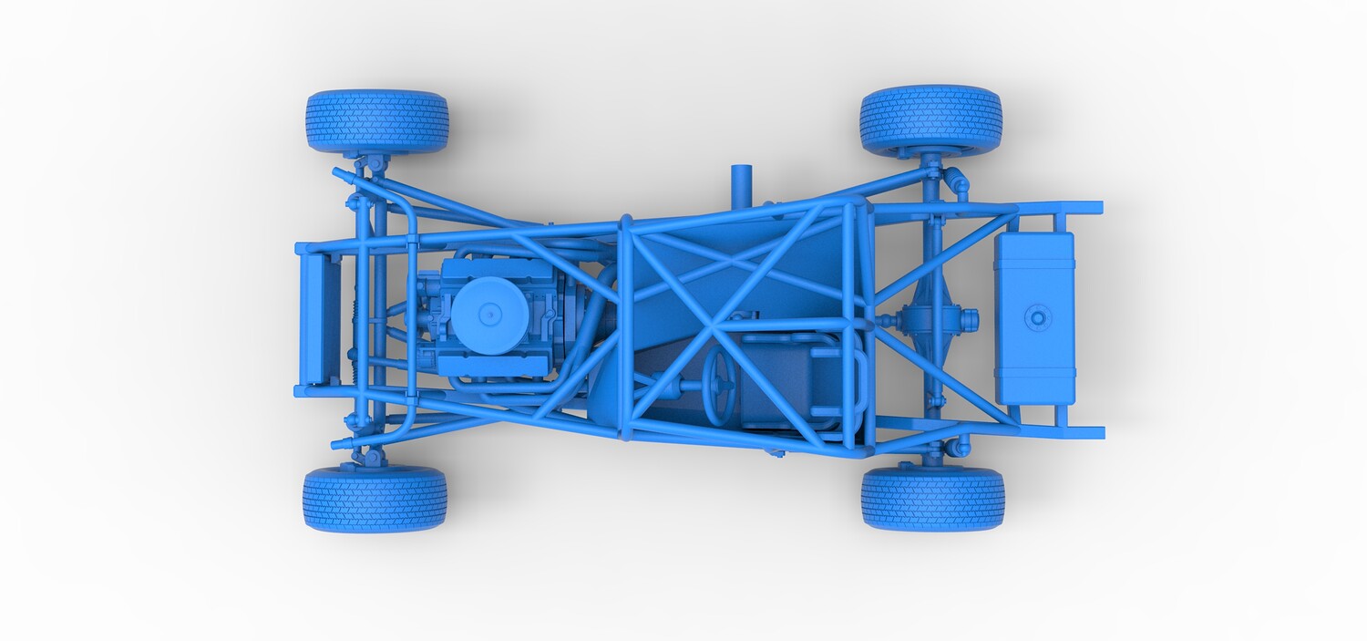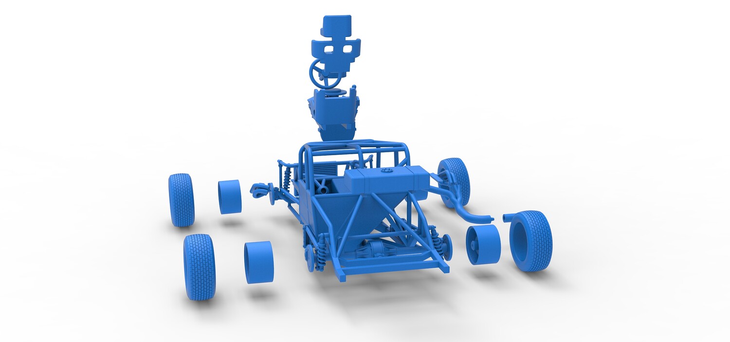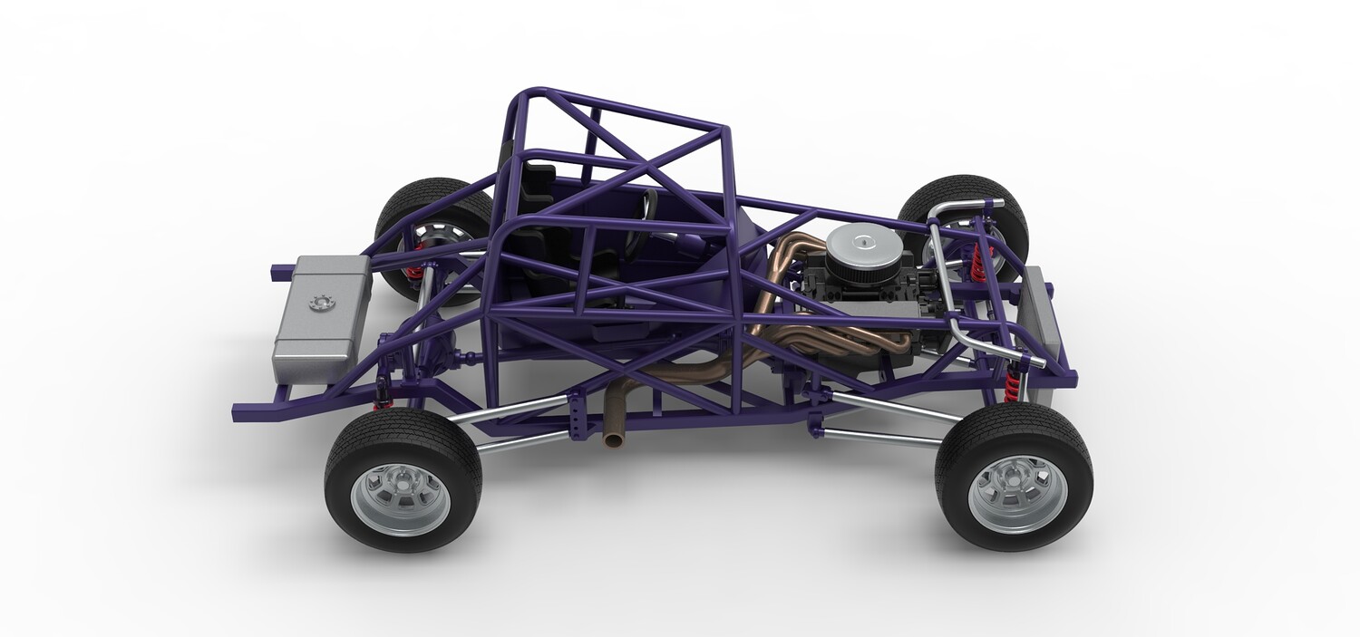 The model consists of parts: Air filter cap, Air filter, Engine, Exhaust pipe part 1,2, Frame, Insert bar, Left exhaust, Radiator, Right exhaust, Rims, Seat part 1,2, Shifter, Steering wheel, Tank, Tires.