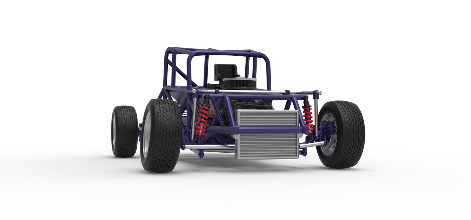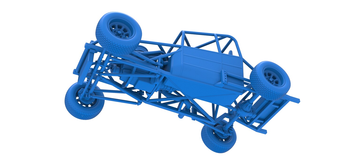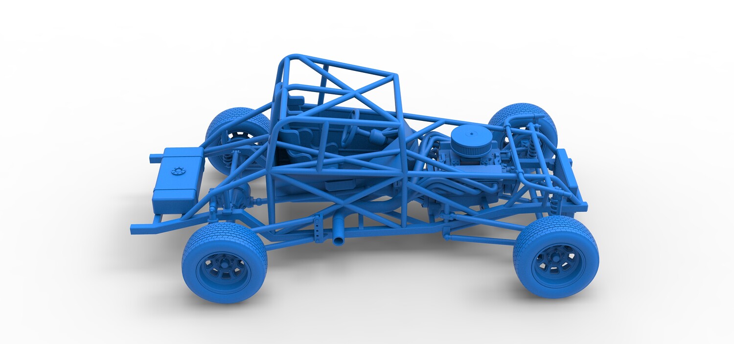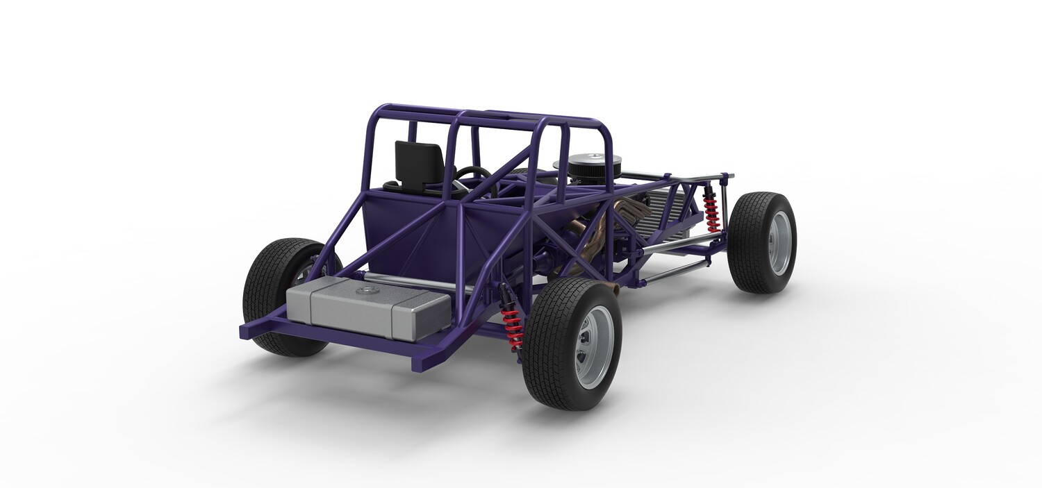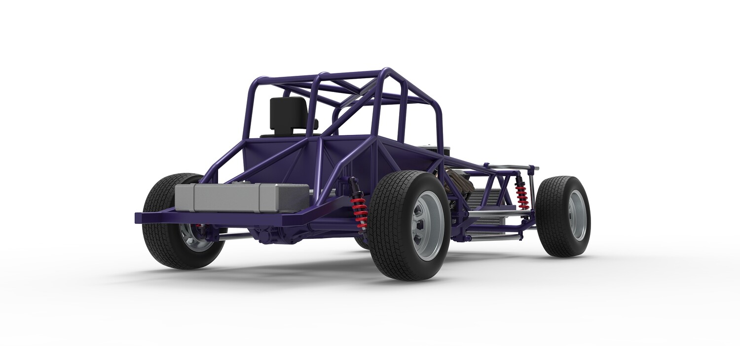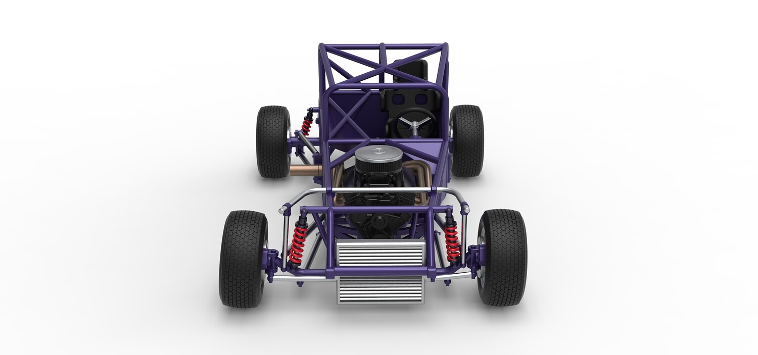 The model consists of parts: Air filter cap, Air filter, Engine, Exhaust pipe part 1,2, Frame, Insert bar, Left exhaust, Radiator, Right exhaust, Rims, Seat part 1,2, Shifter, Steering wheel, Tank, Tires.