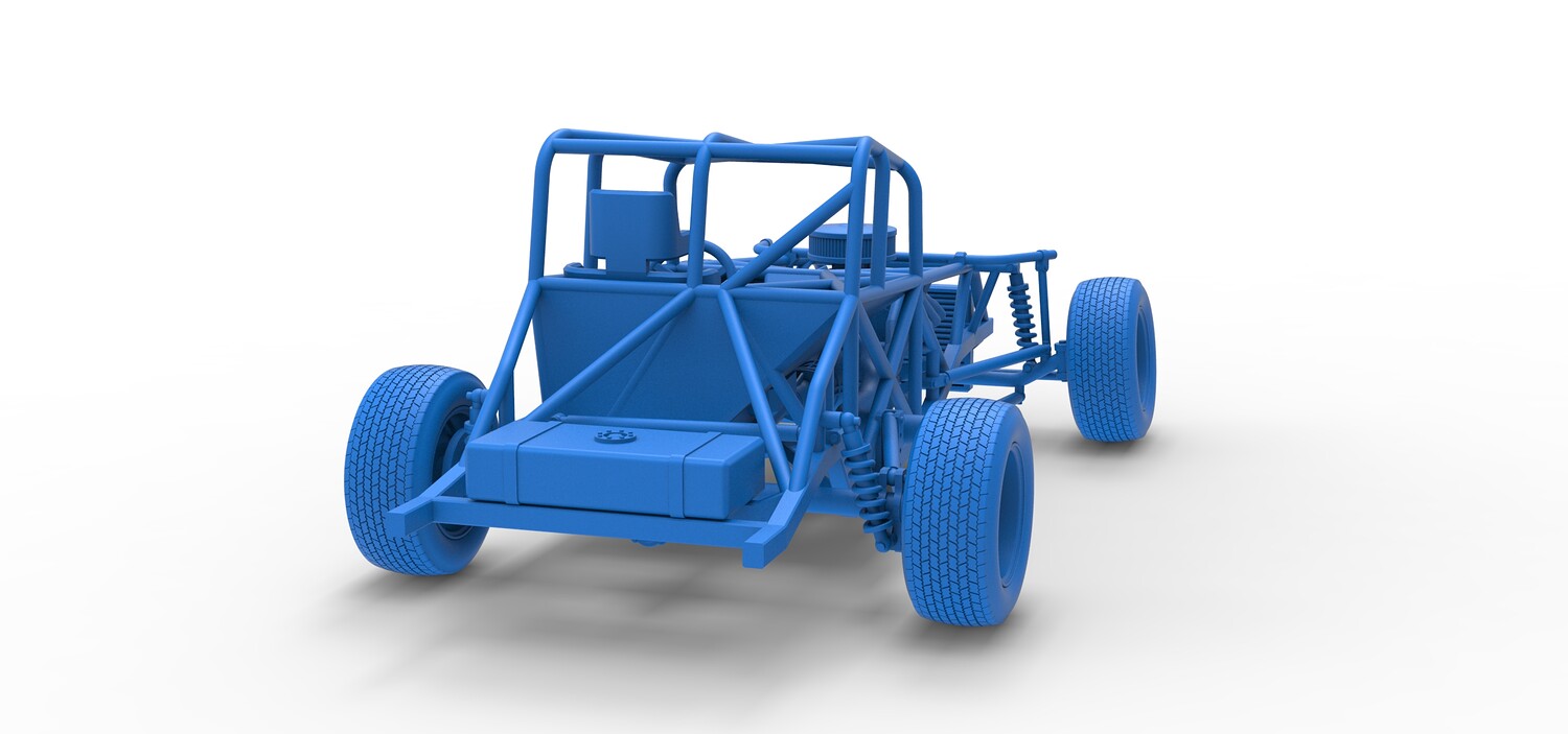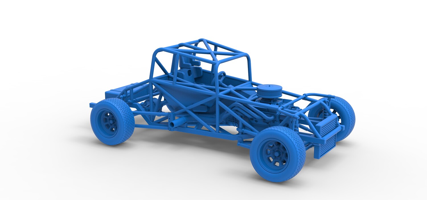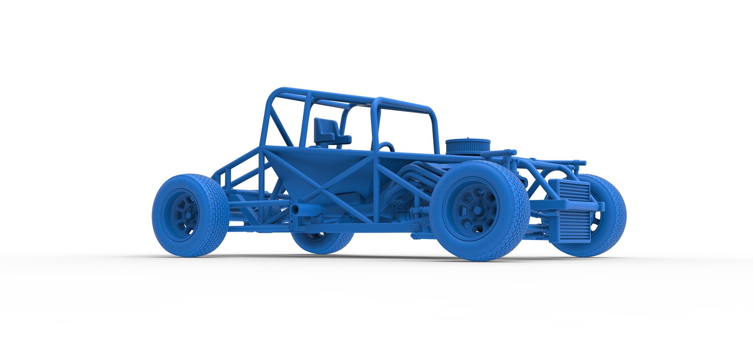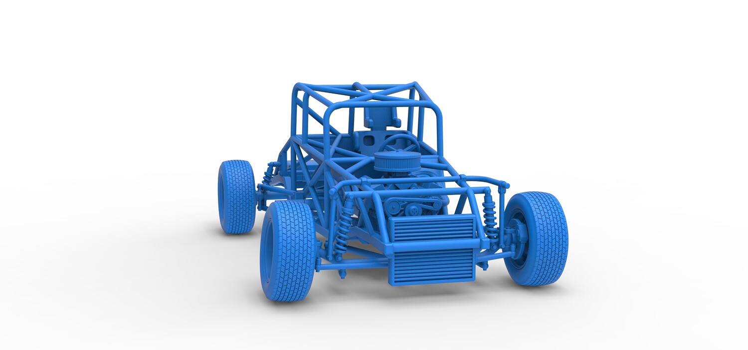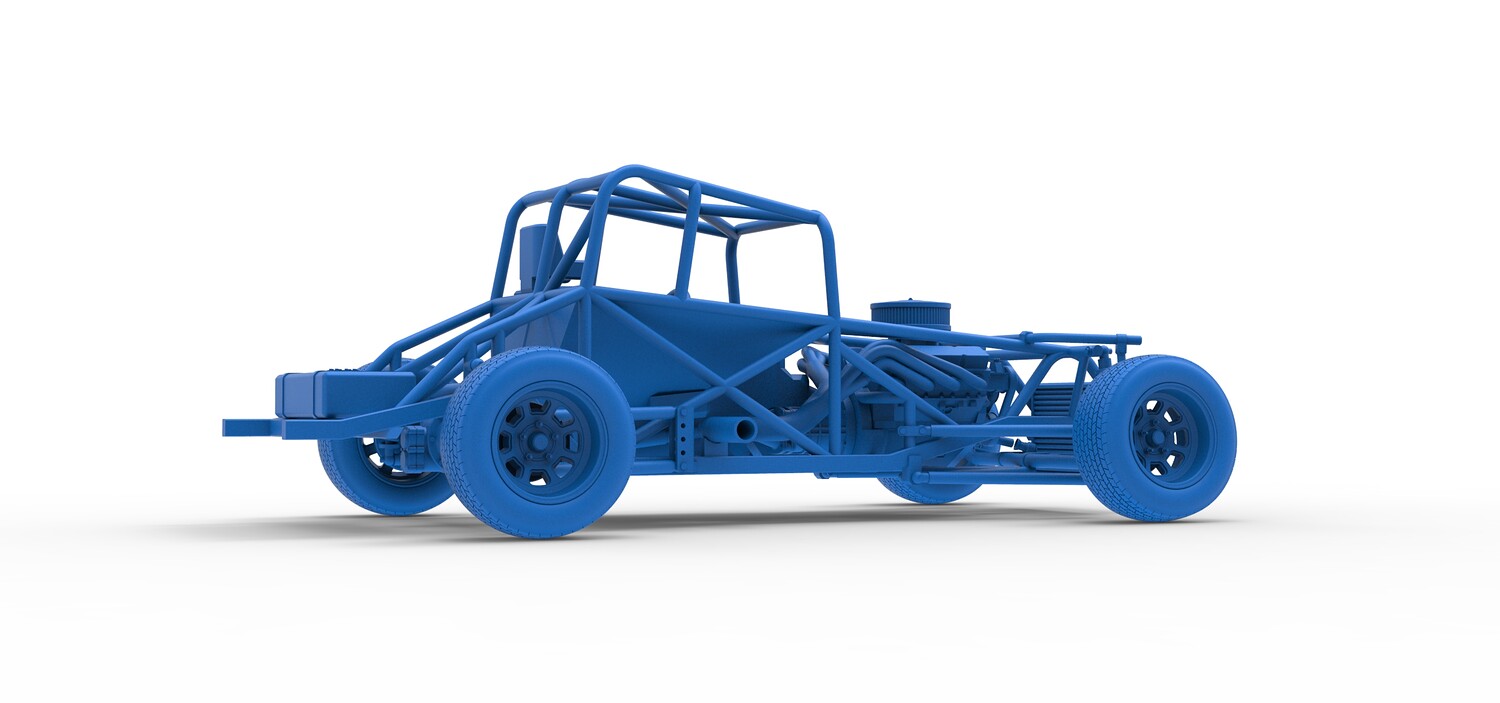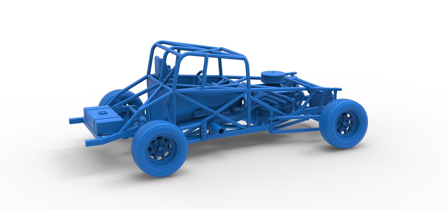 The model consists of parts: Air filter cap, Air filter, Engine, Exhaust pipe part 1,2, Frame, Insert bar, Left exhaust, Radiator, Right exhaust, Rims, Seat part 1,2, Shifter, Steering wheel, Tank, Tires.