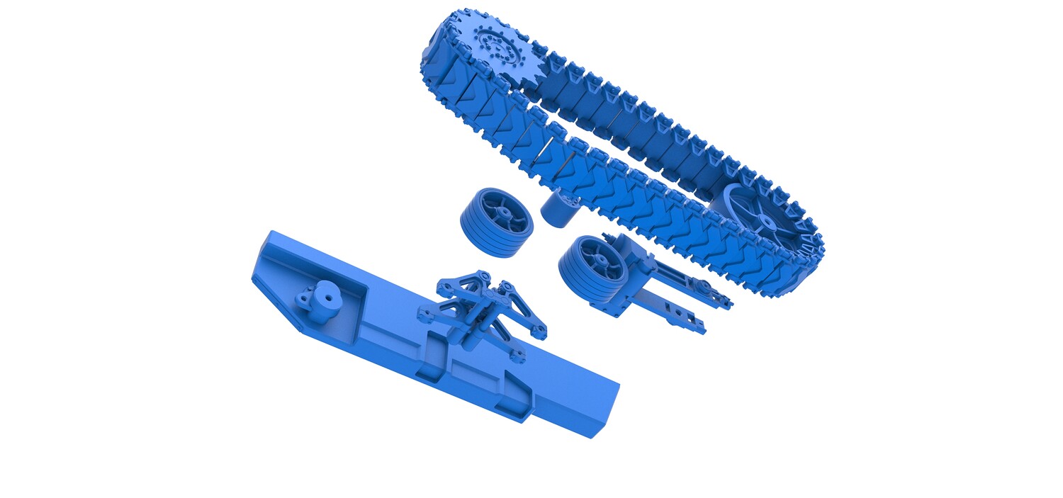 The model consists of parts: Body, Bogie, Caterpillar, Rear roller mount, Road rollers, Upper roller.