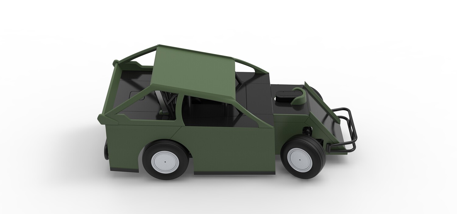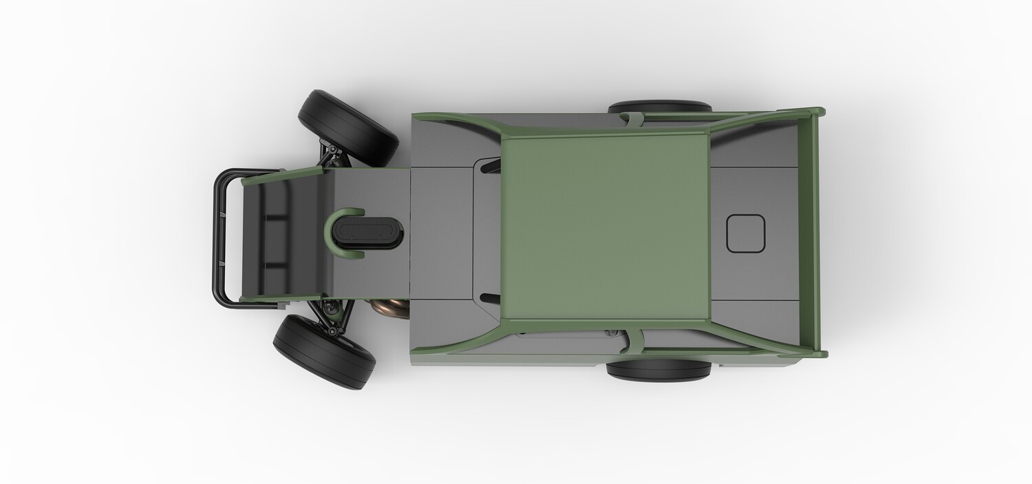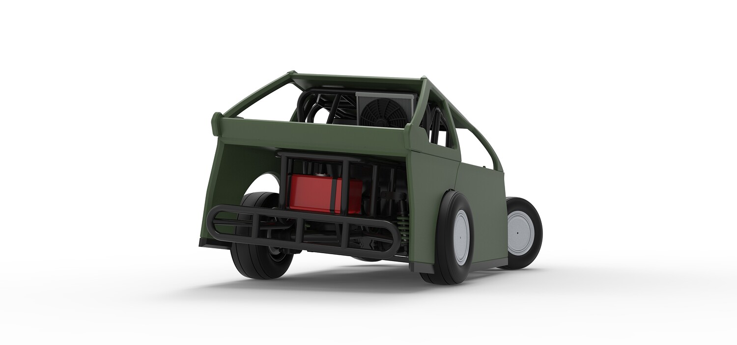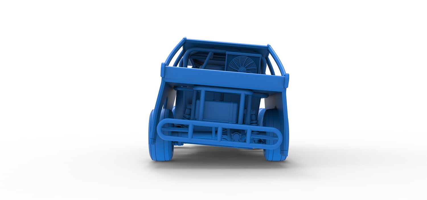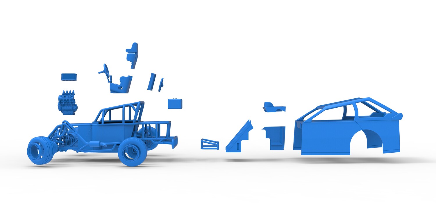 The model consists of parts: Air filter, Beadlock rings, Beadlock rings for mud guard, Engine, Exhaust, Fan, Frame, Front bumper, Front rims, Front tires, Hood, Mud guards, Nose, Radiator, Rear rims, Rear tires, Seat part 1,2, Shell main part, Shell side pannel, Shifter, Steering wheel, Tank.