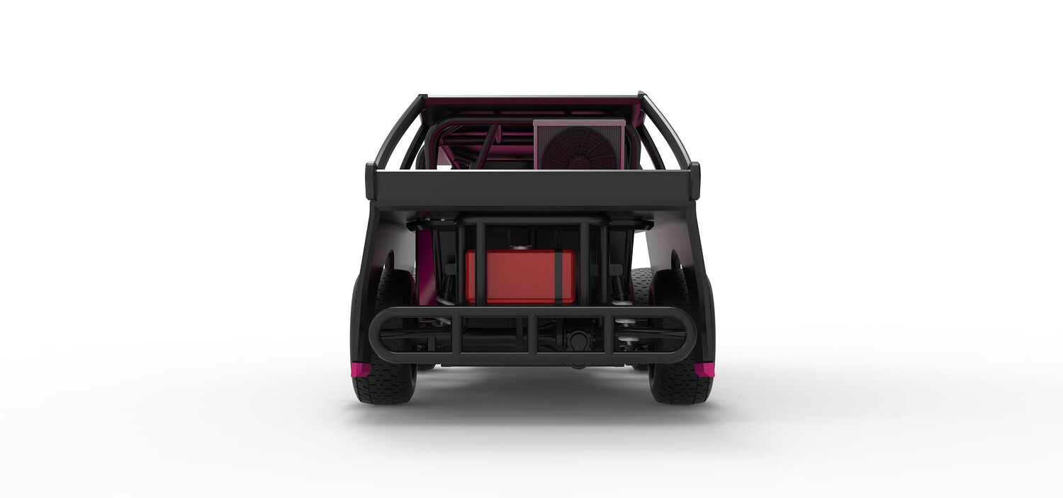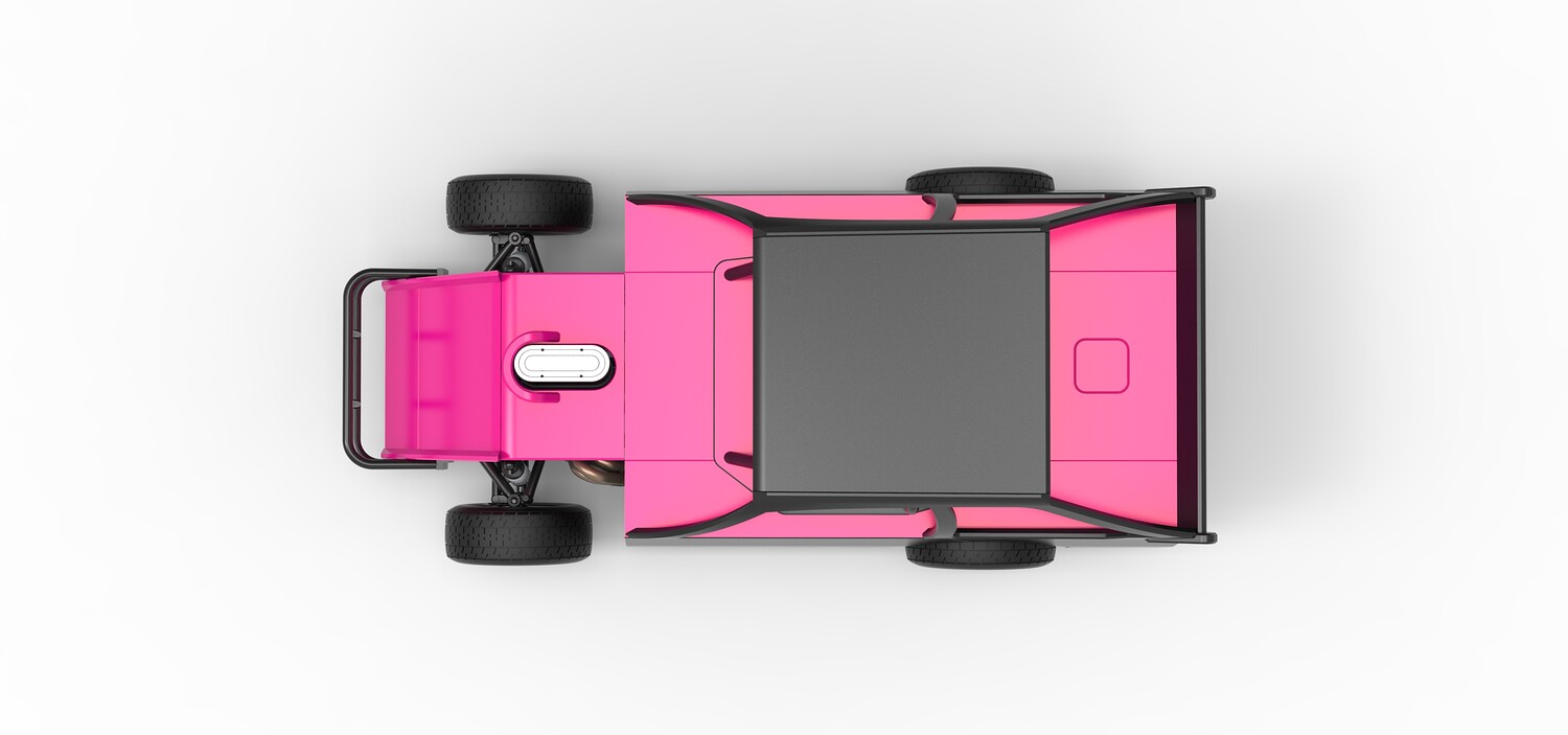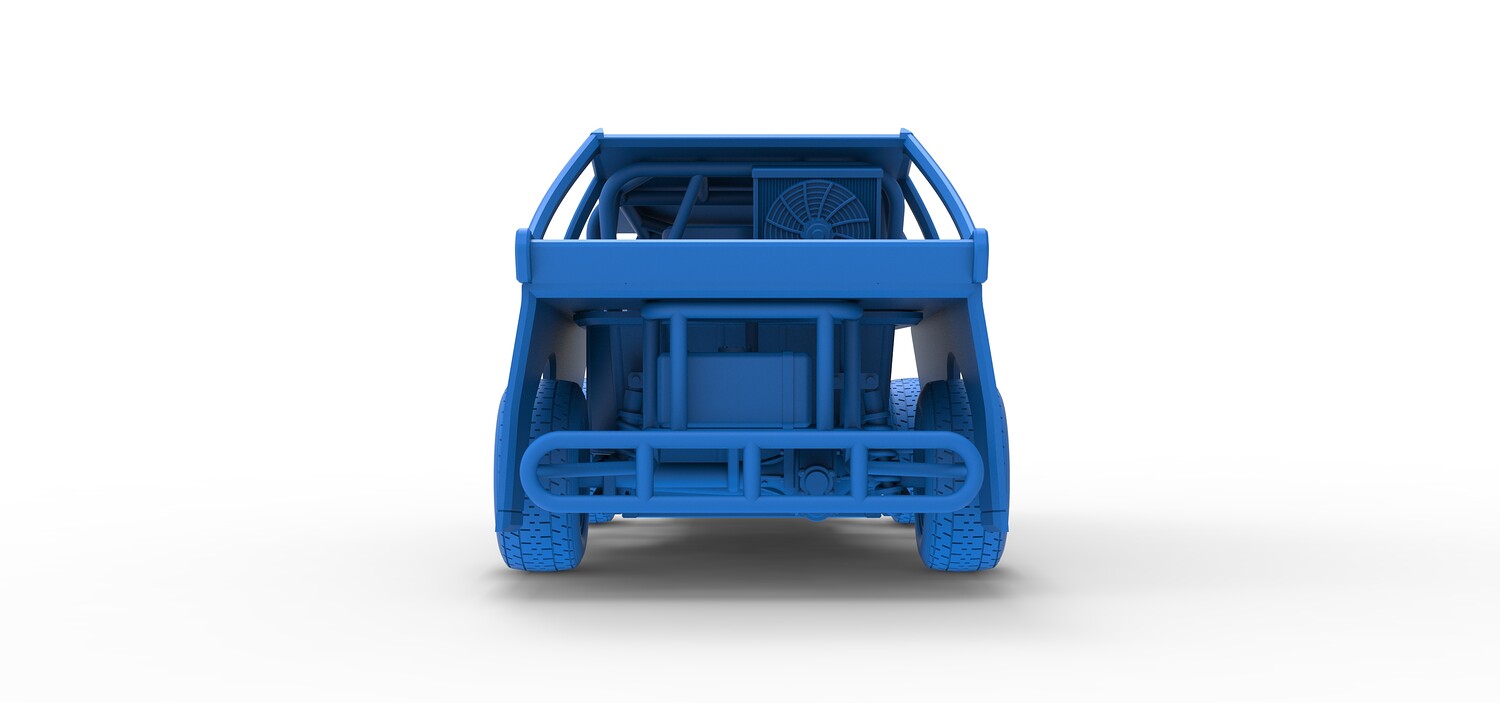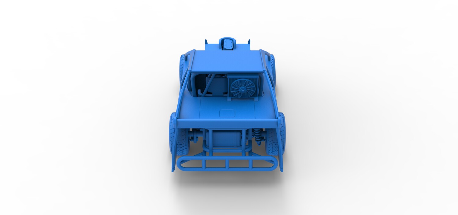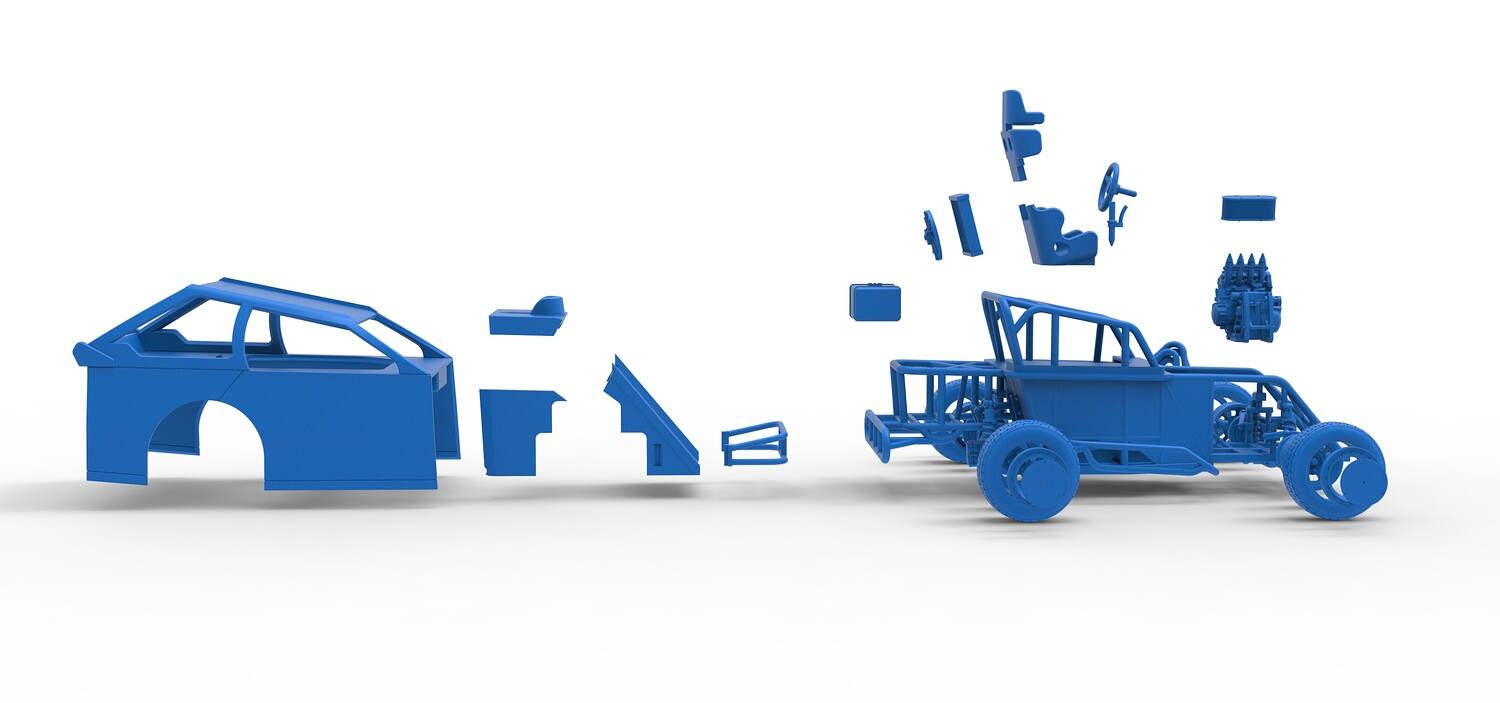 The model consists of parts: Air filter, Beadlock rings, Beadlock rings for mud guard, Engine, Exhaust, Fan, Frame, Front bumper, Front rims, Front tires, Hood, Mud guards, Nose, Radiator, Rear rims, Rear tires, Seat part 1,2, Shell main part, Shell side pannel, Shifter, Steering wheel, Tank.