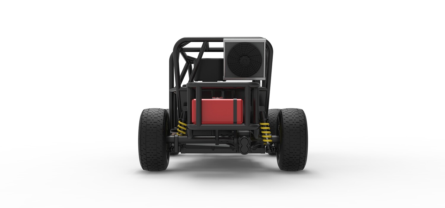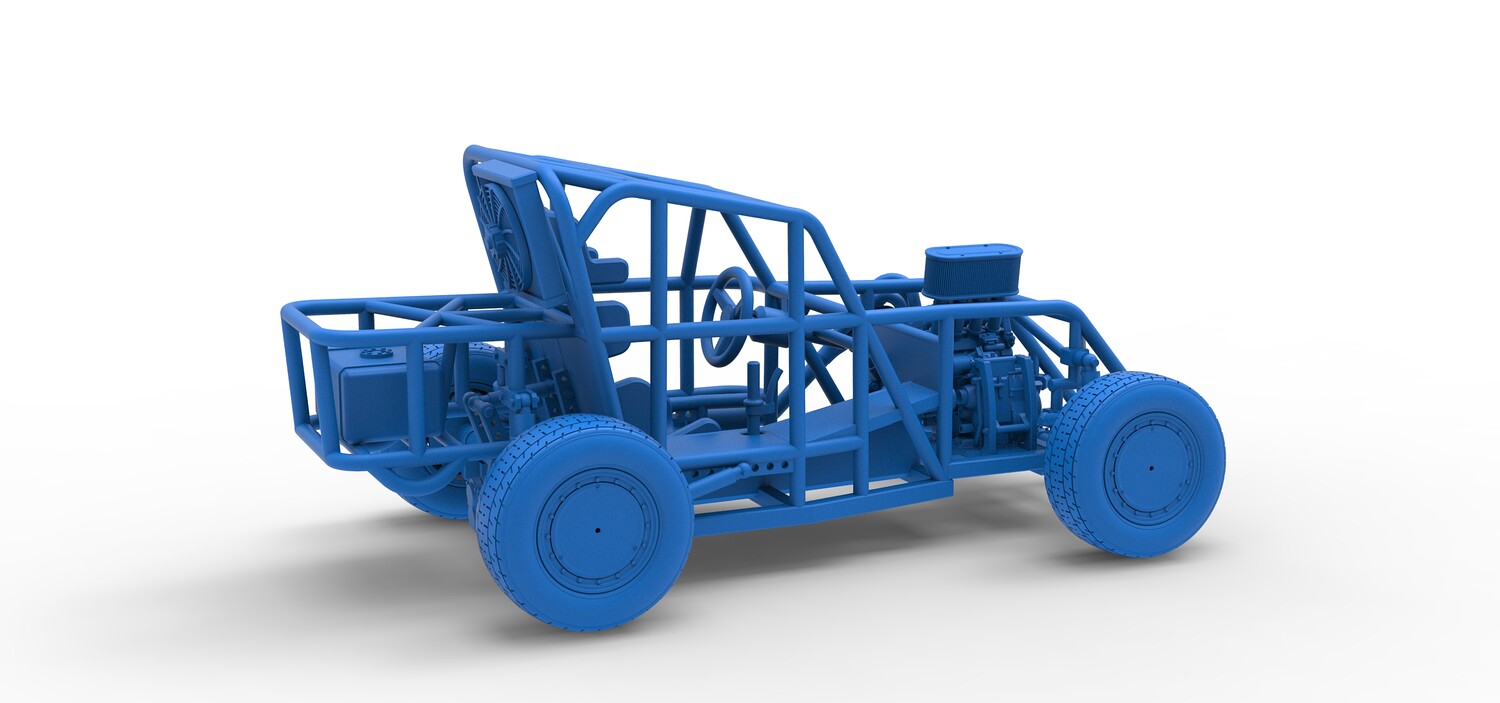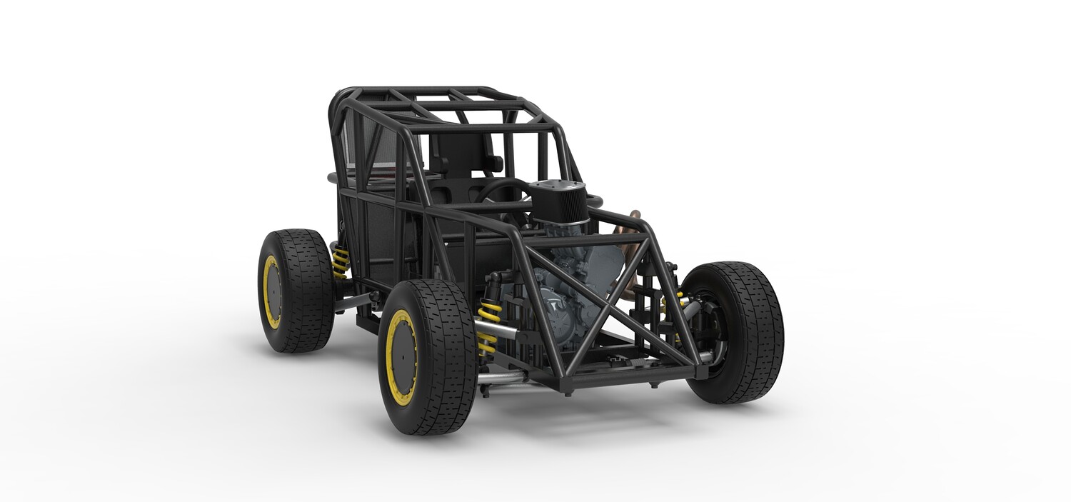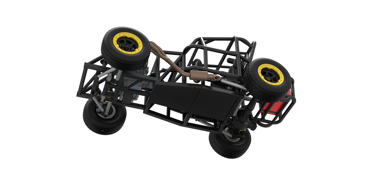 The model consists of parts: Air filter, Beadlock rings, Beadlock rings for mud guard, Engine, Exhaust, Fan, Frame, Front rims, Front tires, Mud guards, Radiator, Rear rims, Rear tires, Seat part 1,2, Shifter, Steering wheel, Tank.