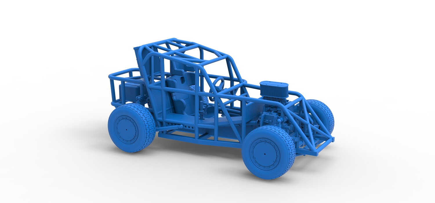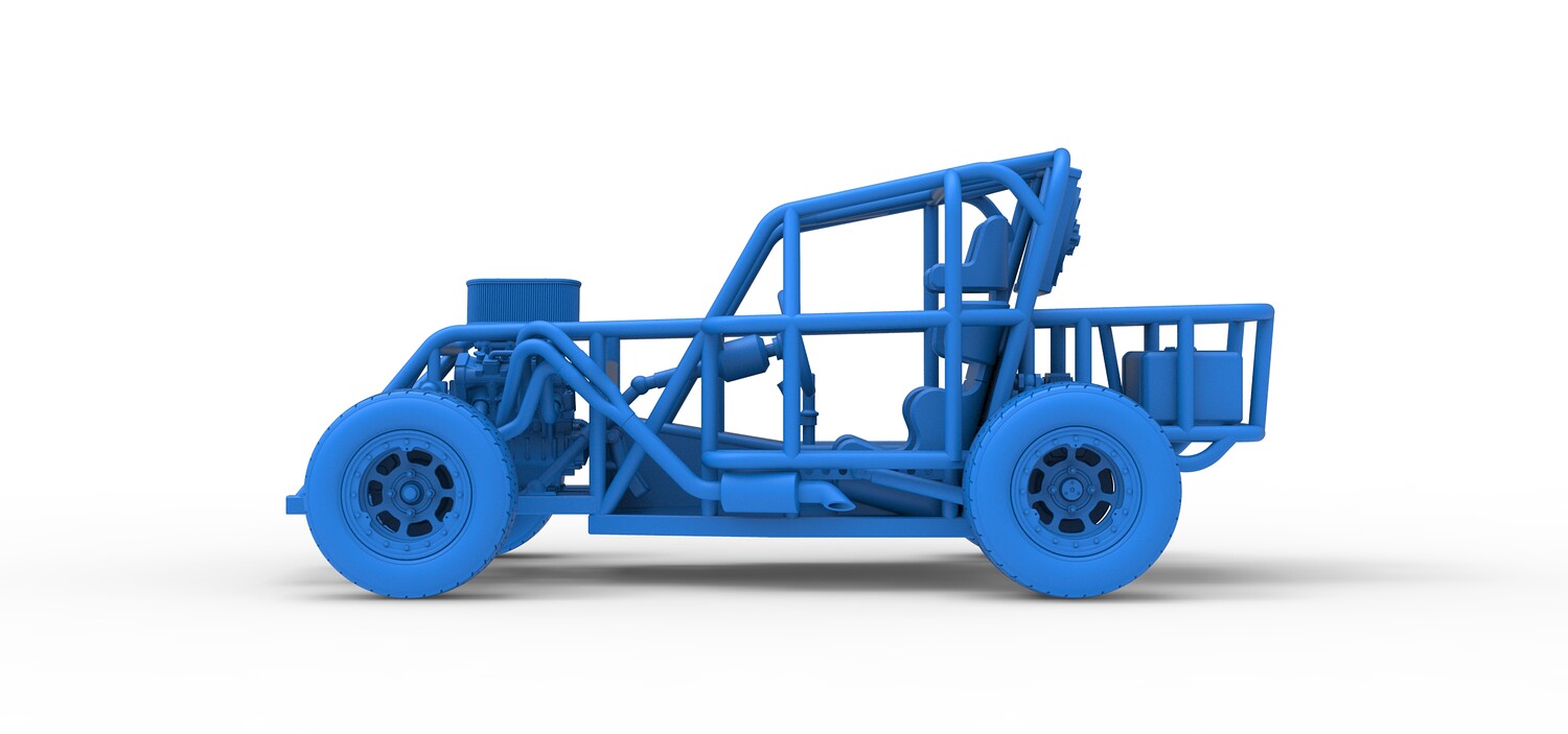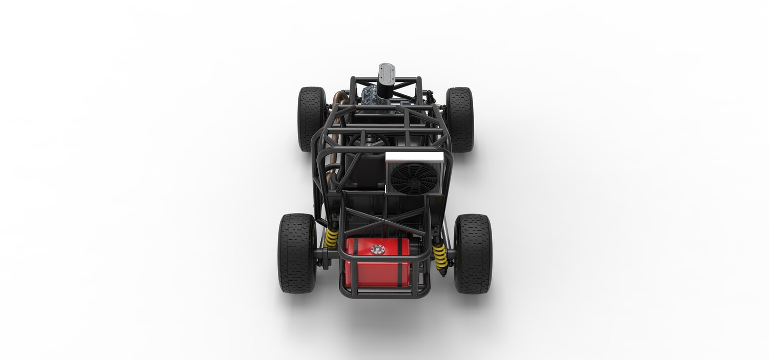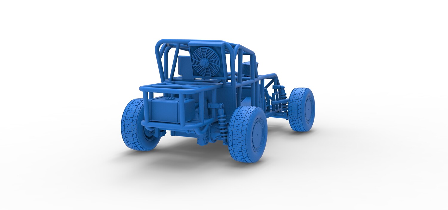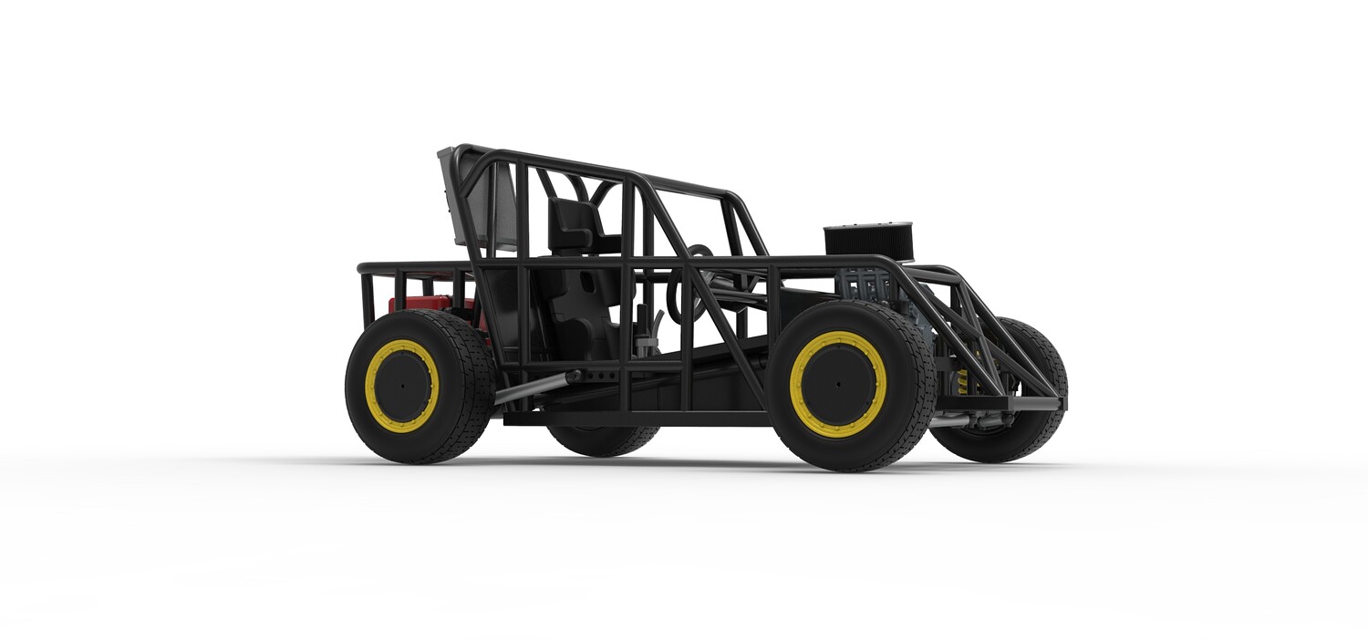 The model consists of parts: Air filter, Beadlock rings, Beadlock rings for mud guard, Engine, Exhaust, Fan, Frame, Front rims, Front tires, Mud guards, Radiator, Rear rims, Rear tires, Seat part 1,2, Shifter, Steering wheel, Tank.