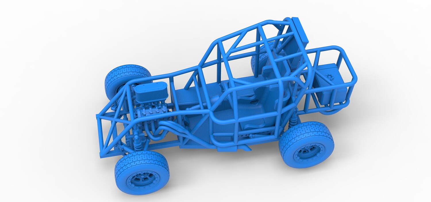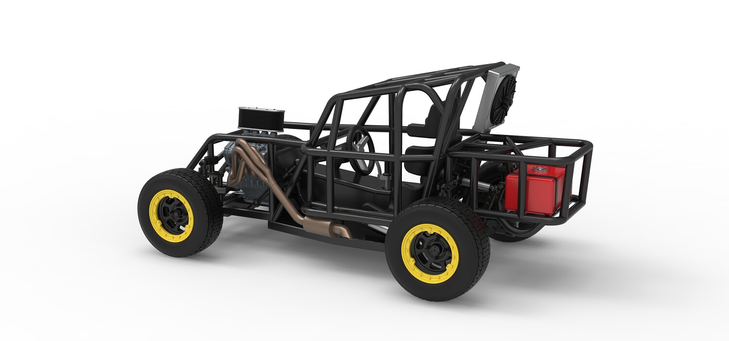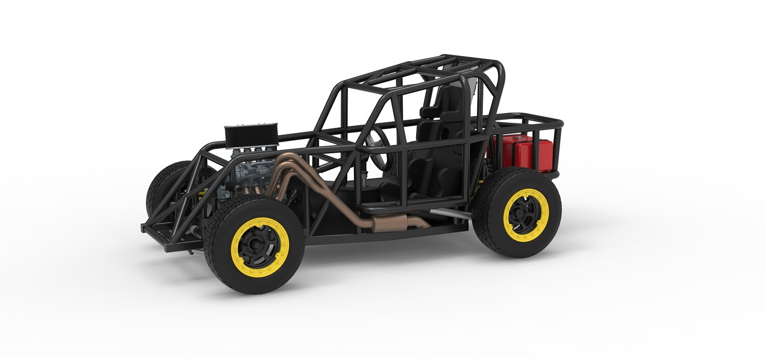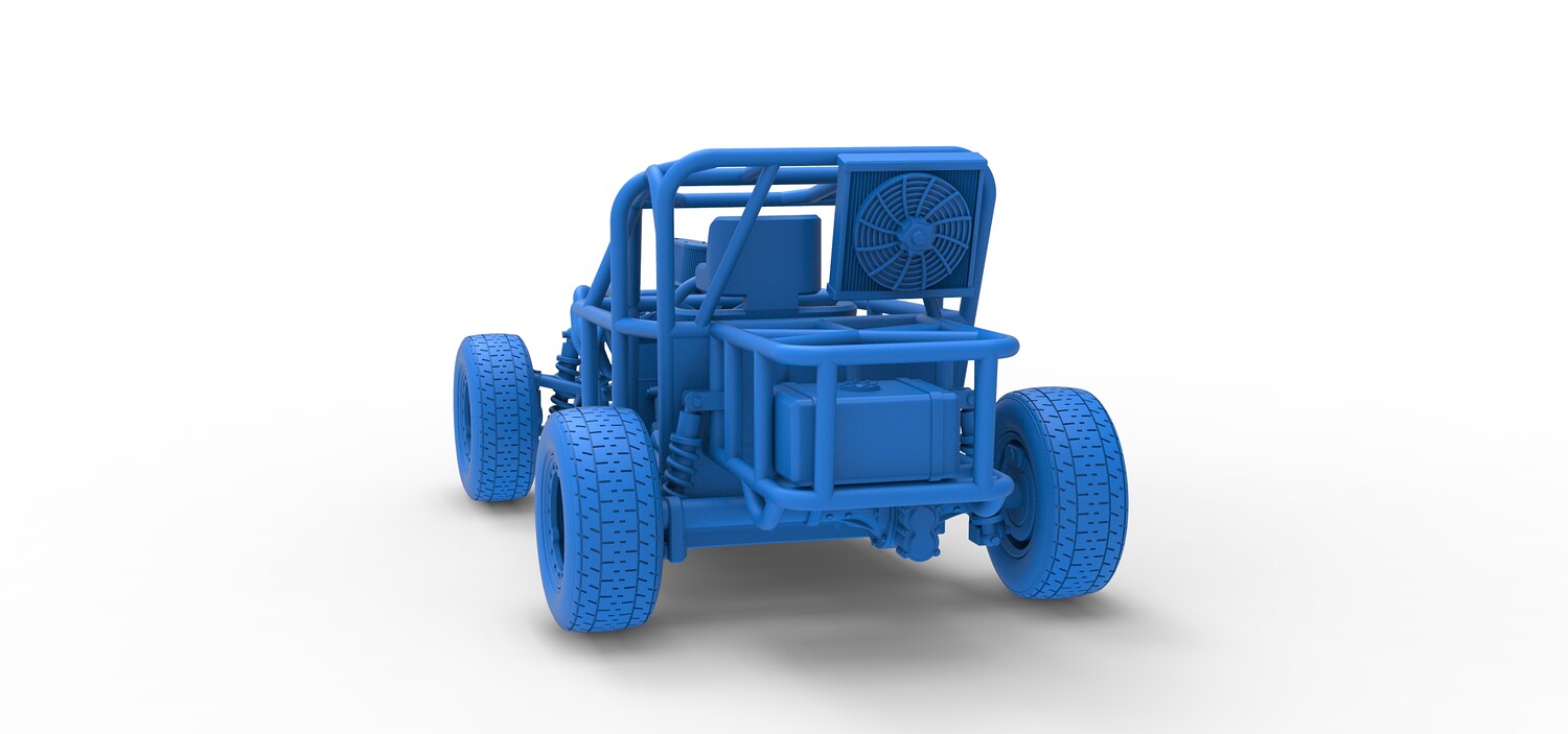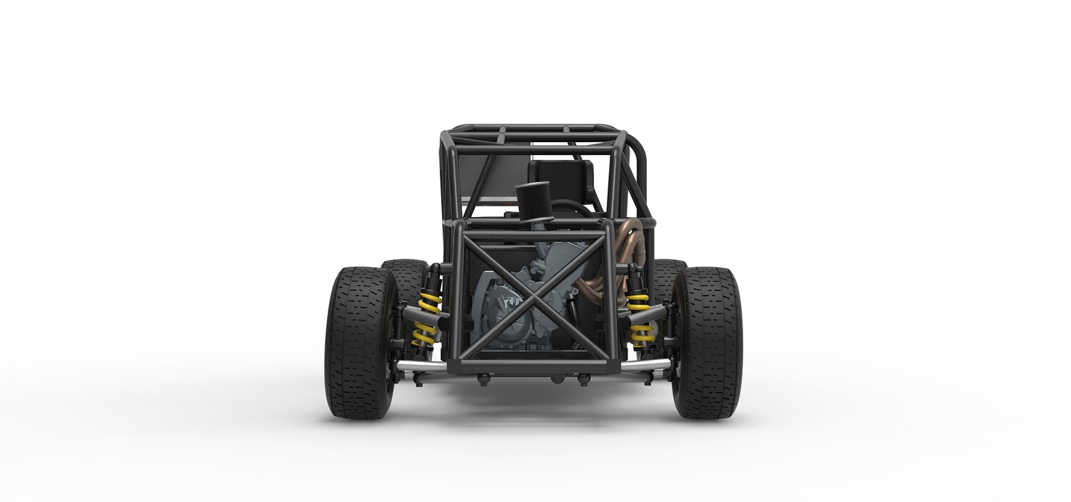 The model consists of parts: Air filter, Beadlock rings, Beadlock rings for mud guard, Engine, Exhaust, Fan, Frame, Front rims, Front tires, Mud guards, Radiator, Rear rims, Rear tires, Seat part 1,2, Shifter, Steering wheel, Tank.