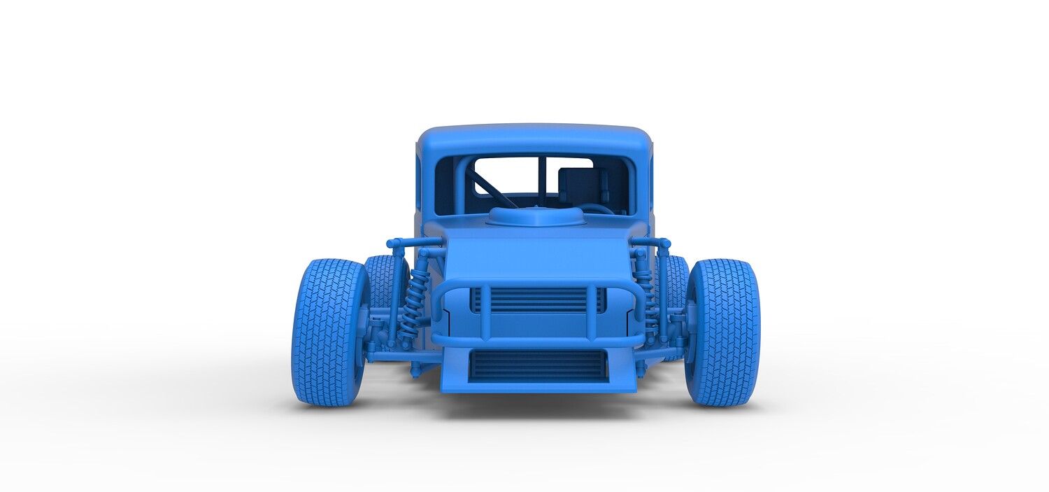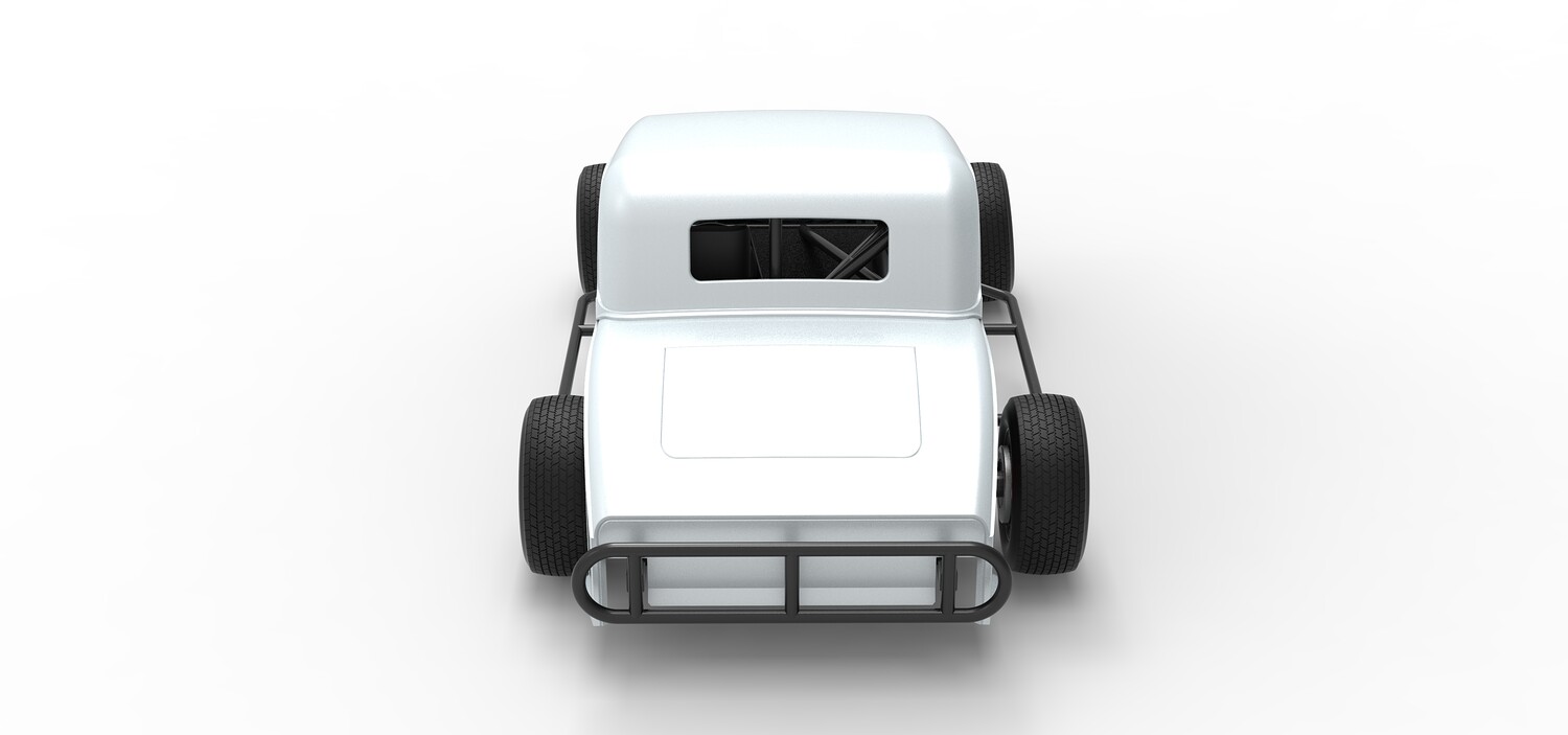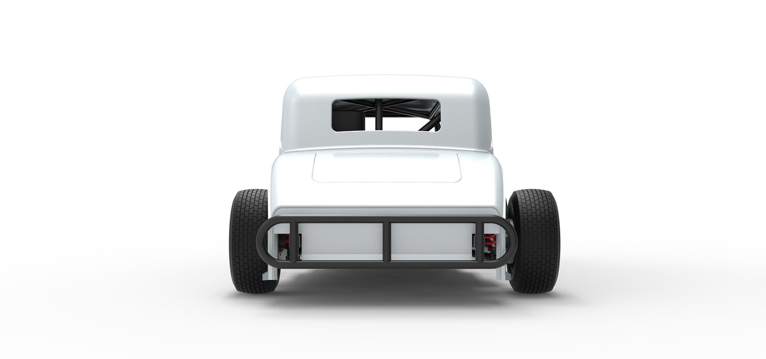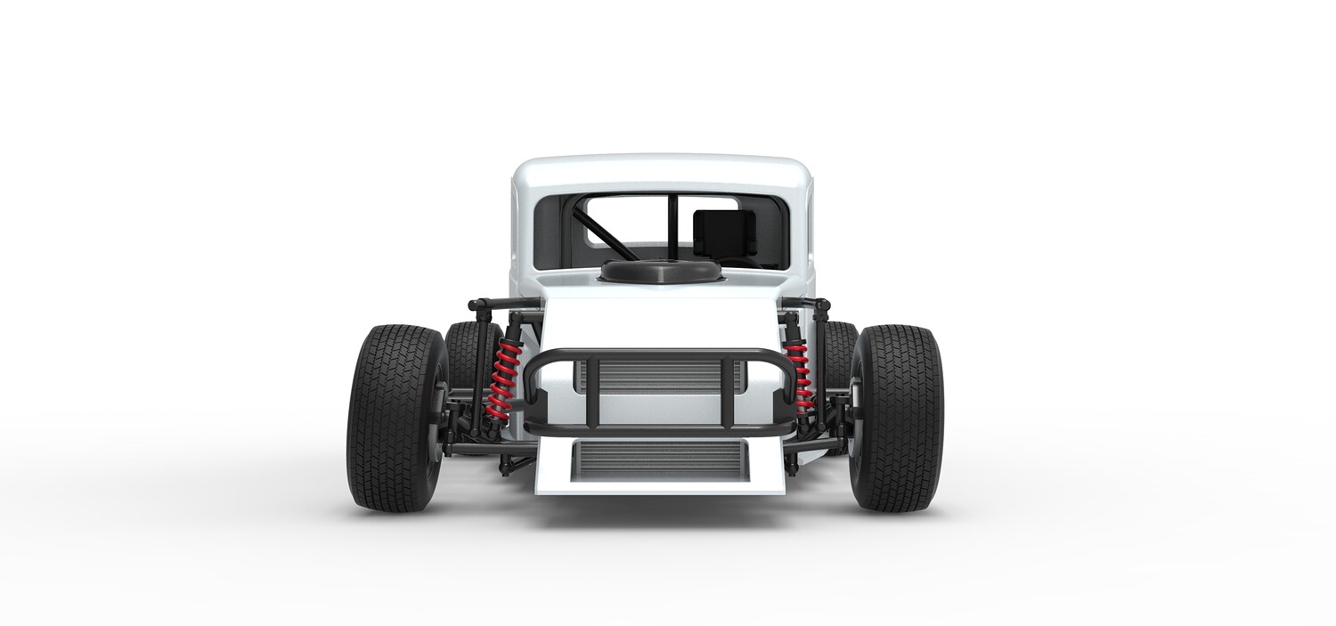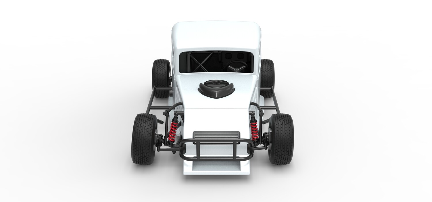 The model consists of parts: Air filter cap, Air filter, Cover, Engine, Exhaust pipe part 1,2, Frame, Front bumper, Hood, Insert bar, Left bumper, Left exhaust, Nose, Radiator, Right bumper, Right exhaust, Rims, Seat part 1,2, Shell left part 1,2, Shell main part, Shell right part 1,2, Shifter, Steering wheel, Tank, Tires.