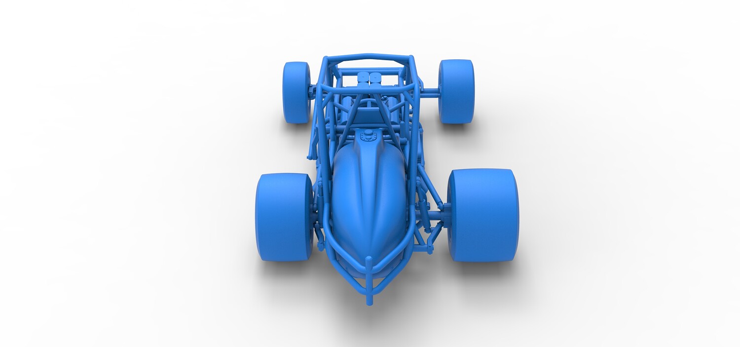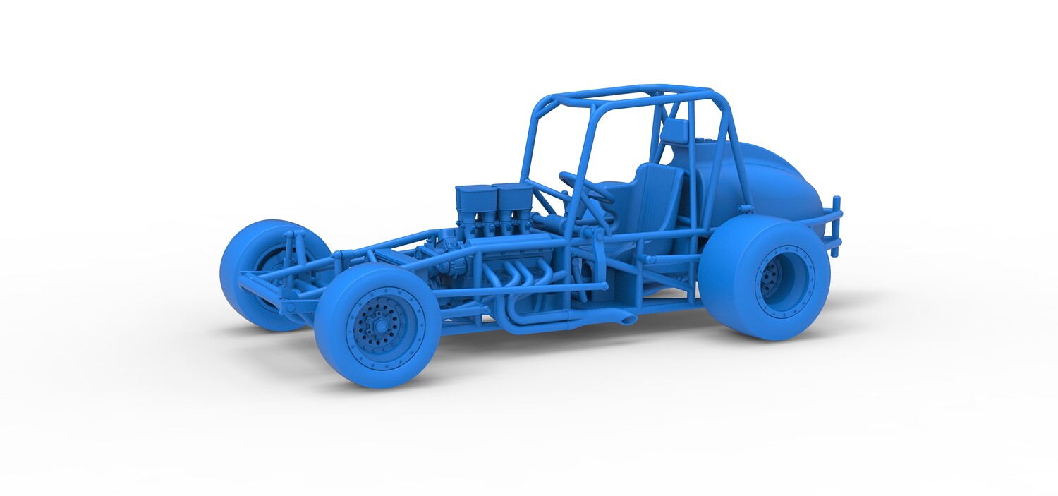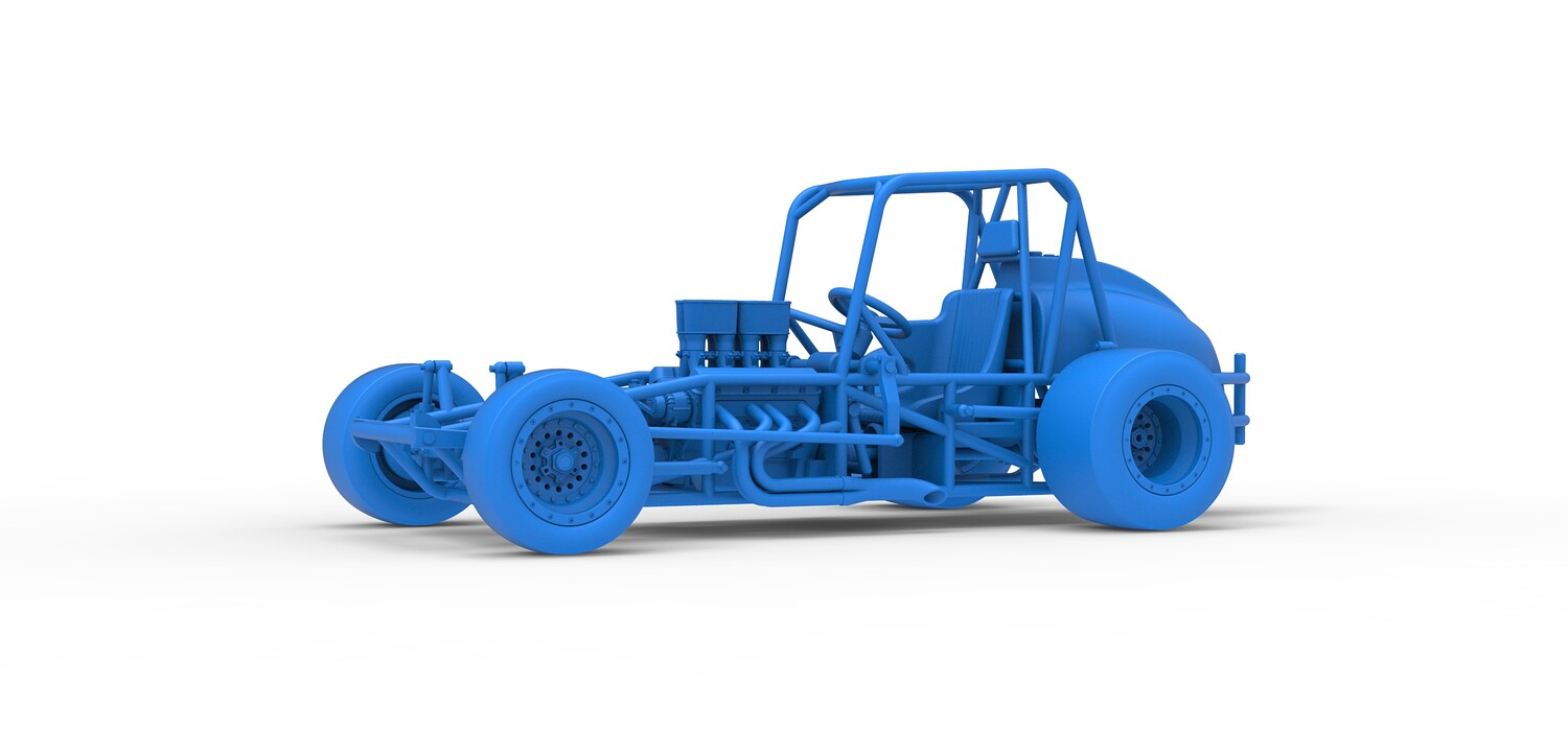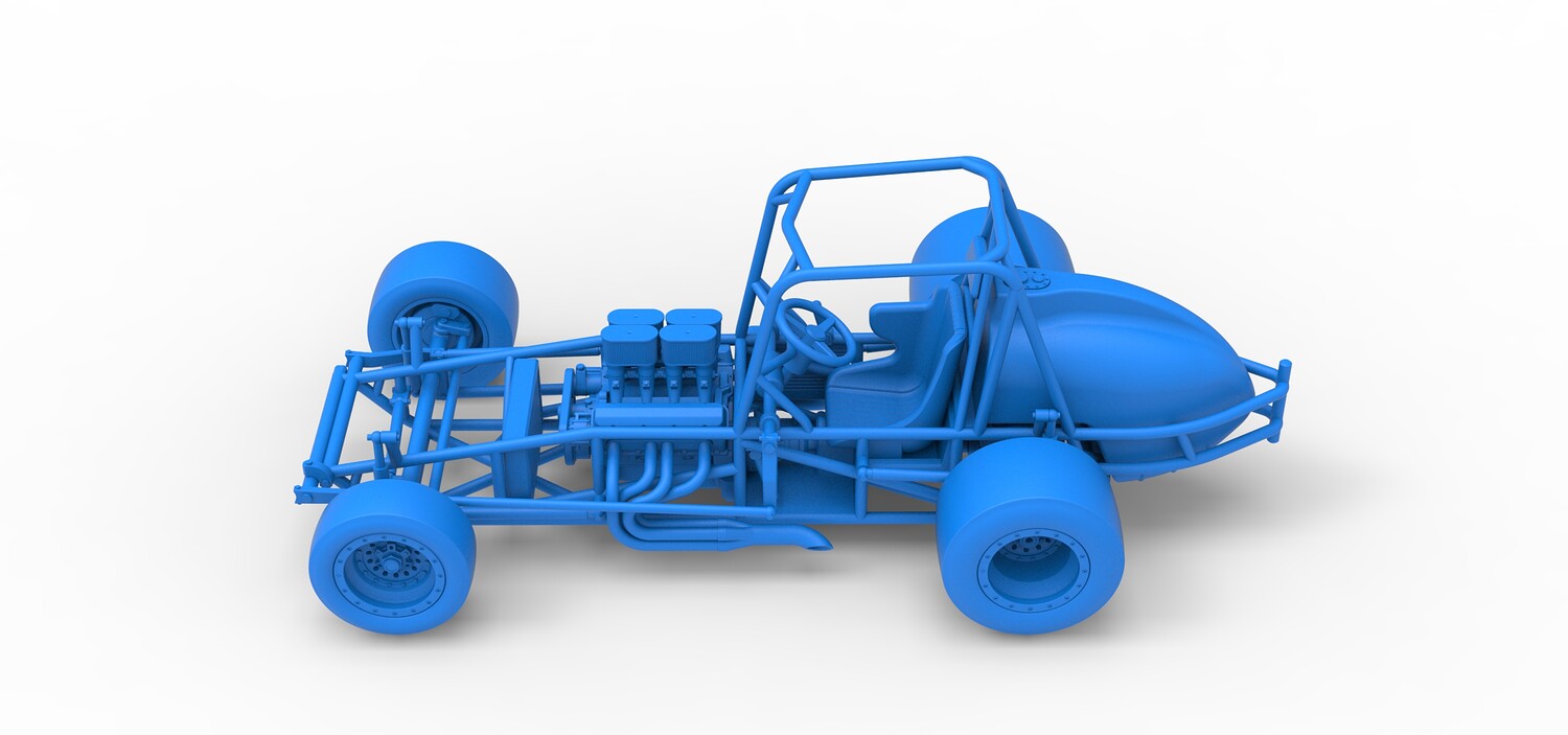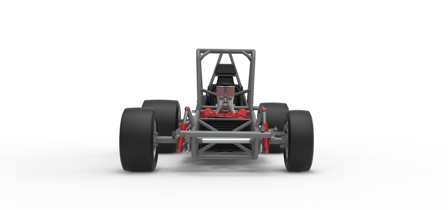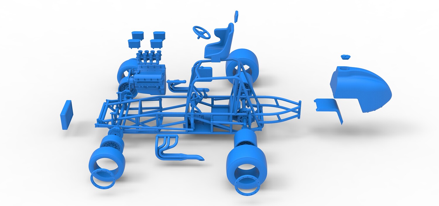 The model consists of parts: Air filters, Air intake, Beadlock rings, Engine, Frame, Front left rim, Front left tire, Front right rim, Front right tire, Fuel tank bottom plate, Fuel tank insert, Fuel tank, Headrest, Left exhaust, Oil tank, Radiator, Rear left rim, Rear left tire, Rear right rim, Rear right tire, Right exhaust, Seat, Steering wheel.