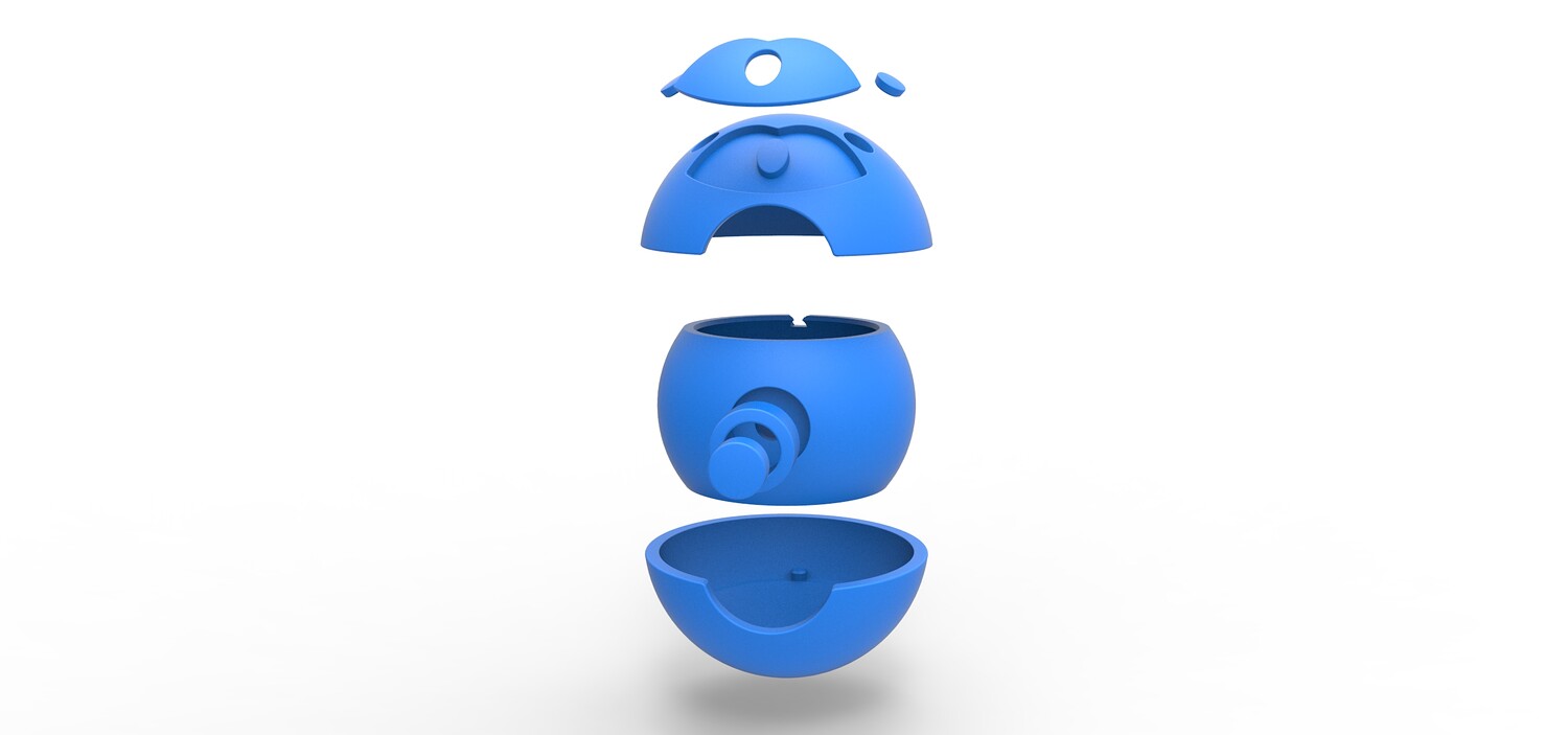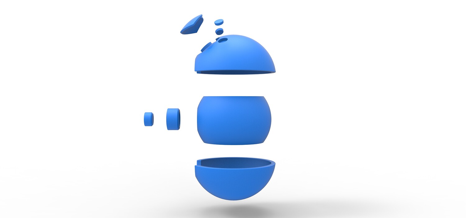 The model consists of parts: Bottom part, Button part 1,2, Central part, Hub inserts, Top insert, Top part.