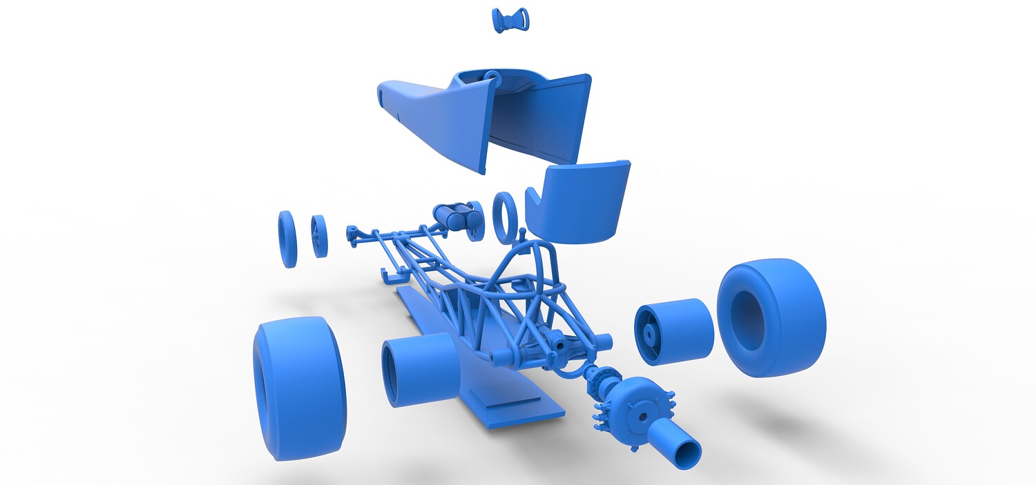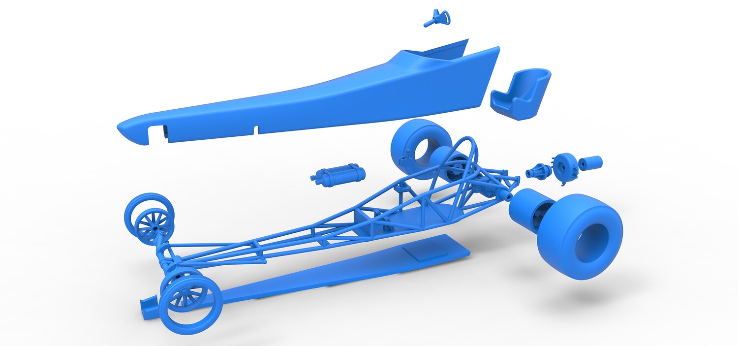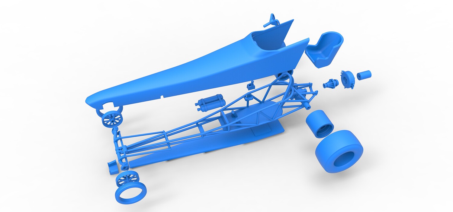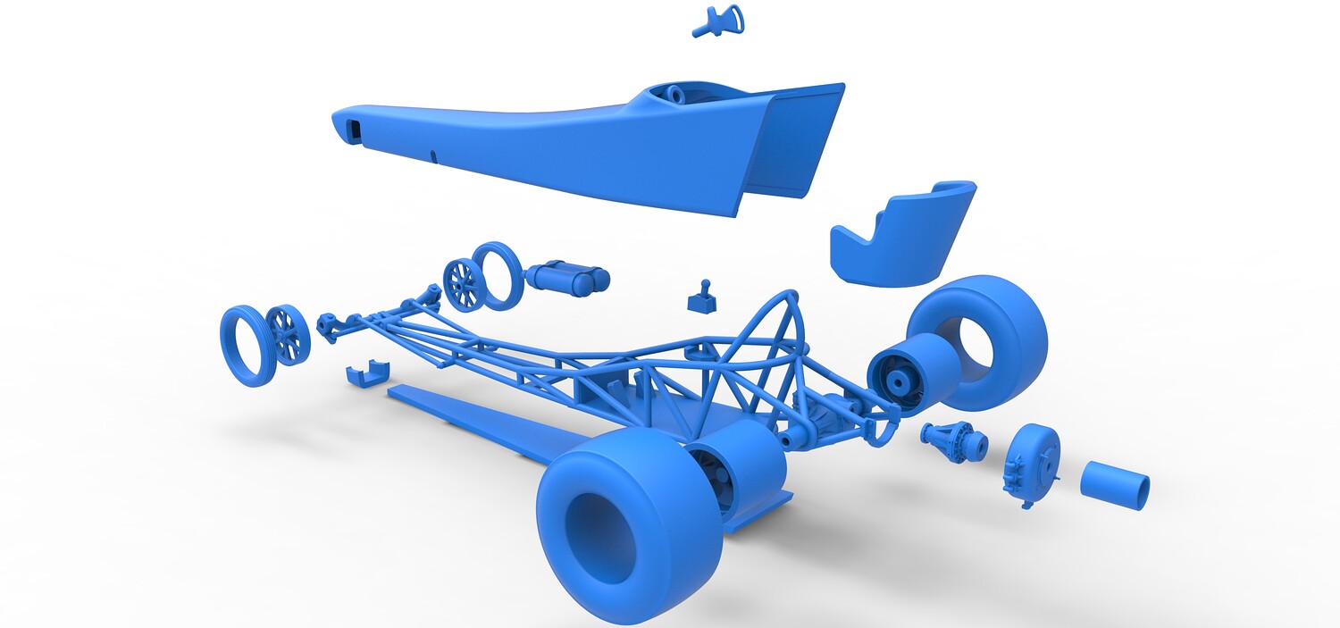 The model consists of parts: Body, Combustion chamber, Exhaust pipe, Front rims, Front tires, Rear rims, Rear tires, Reductor, Seat, Shell part 1-3, Shifter, Steering wheel, Tank.