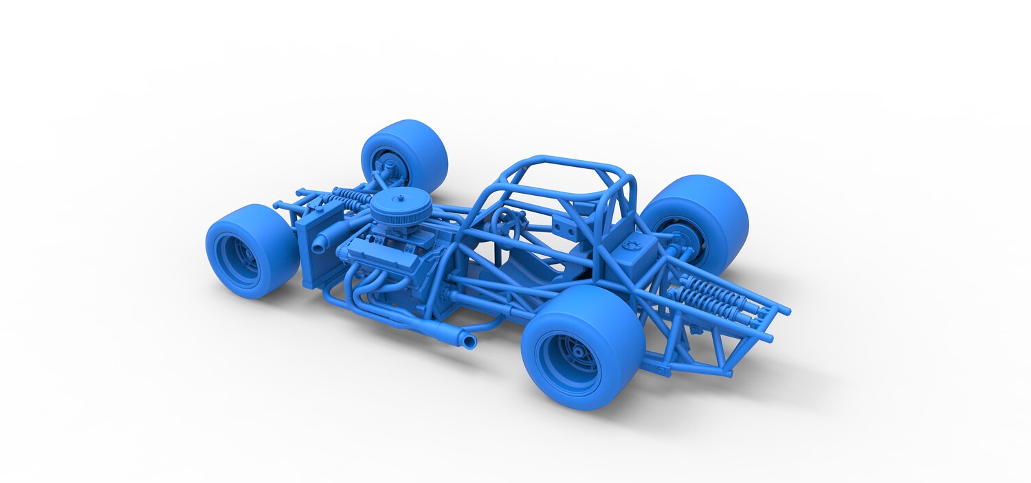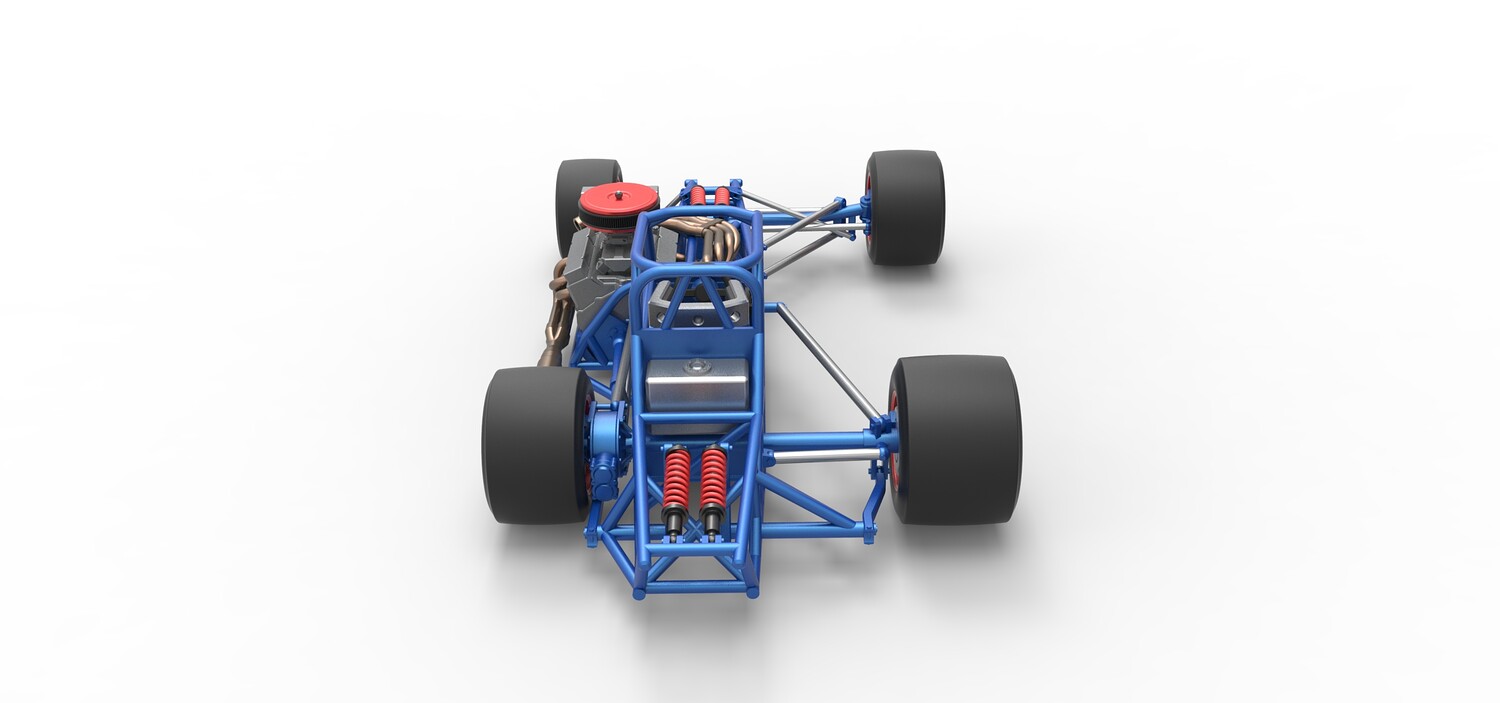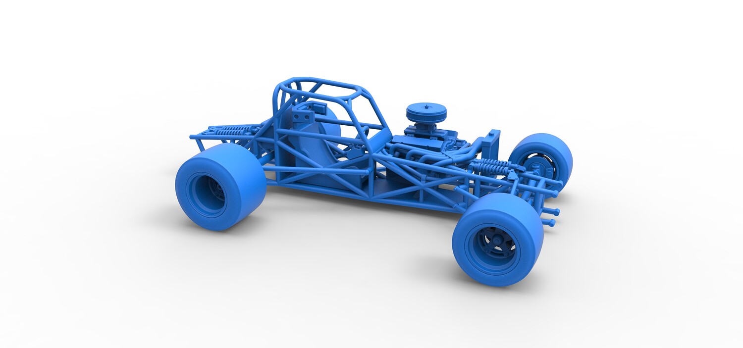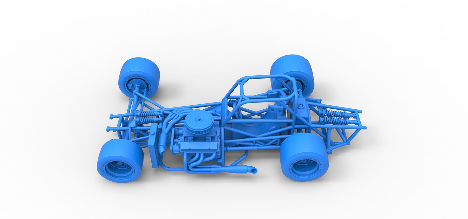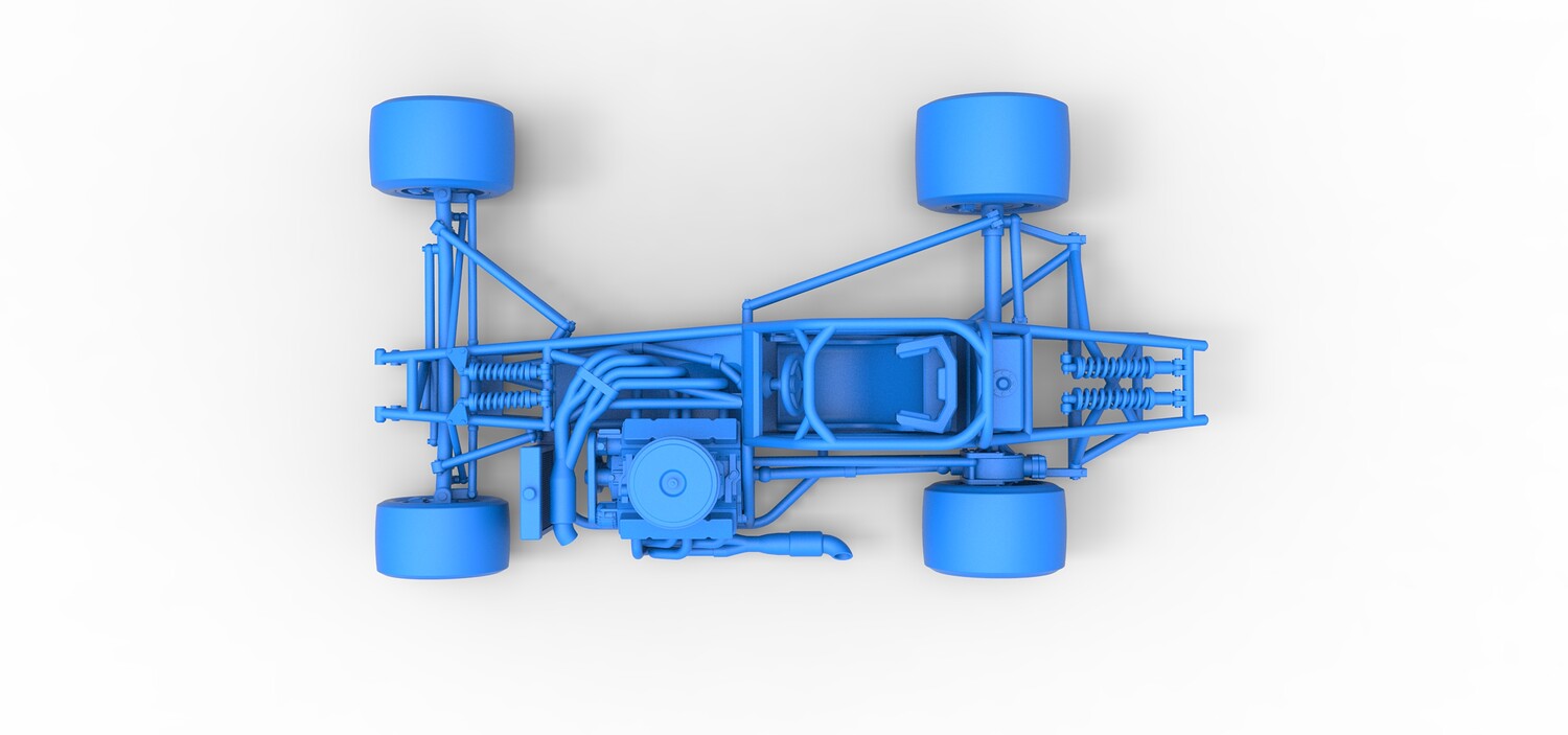 The model consists of parts: Air filter part 1-3, Engine, Frame, Front left rim, Front left tire, Front right rim, Front right tire, Left exhaust, Radiator, Rear left rim, Rear left tire, Rear right rim, Rear right tire, Right exhaust part 1,2, Seat, Shifter, Spacer, Steering wheel, Tank.