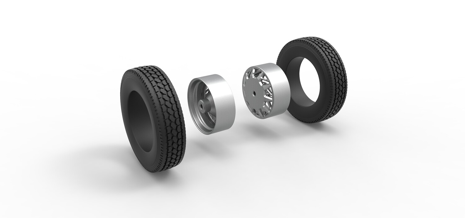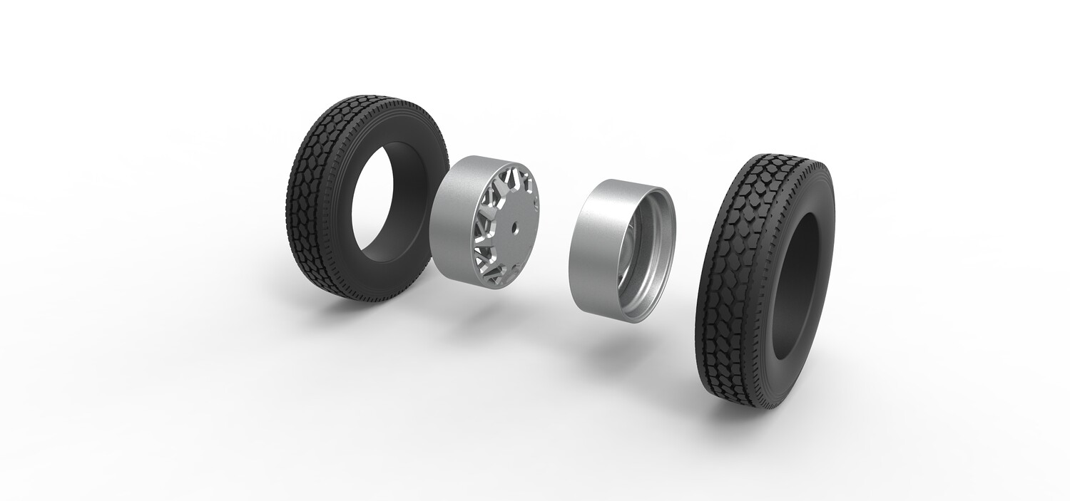 Rear custom wheel of semi truck V14 Scale 1:25