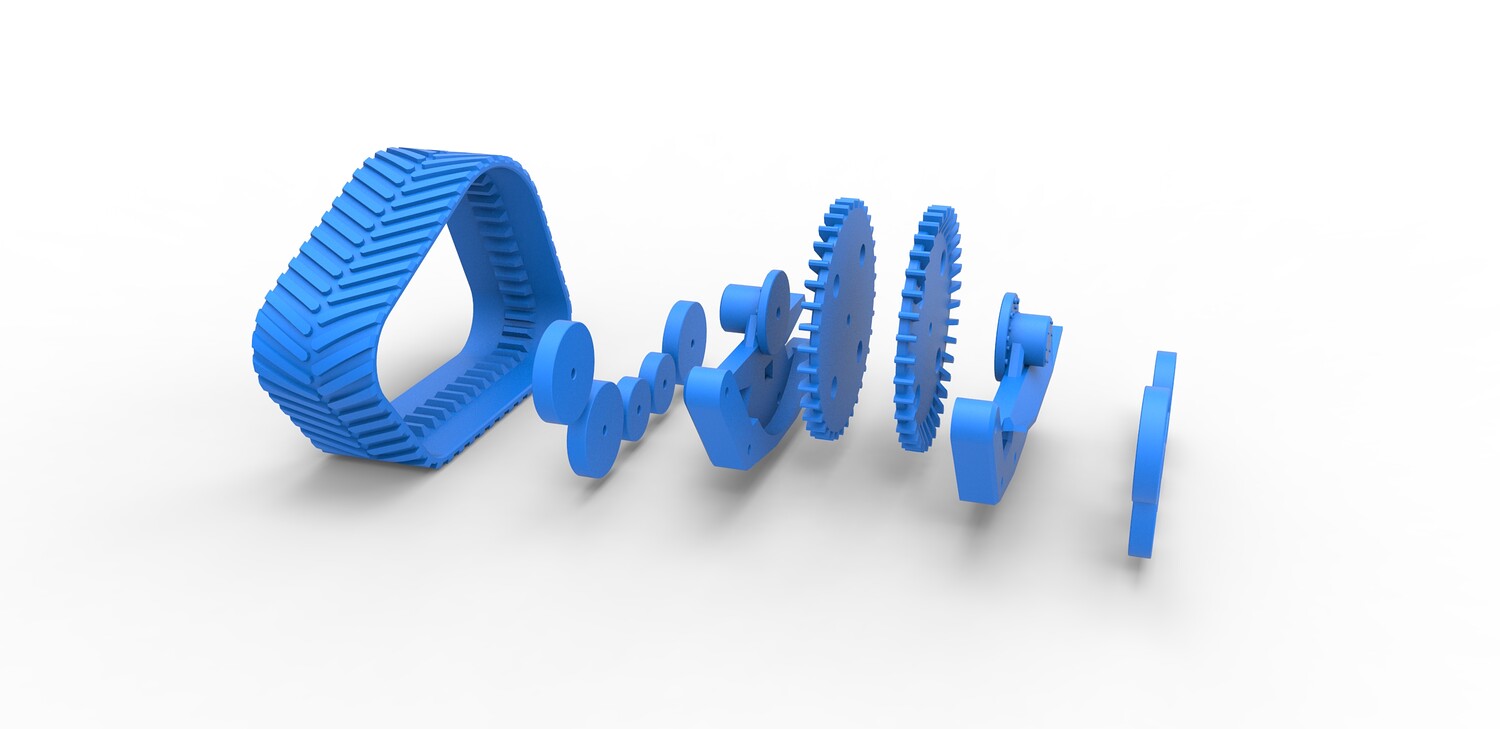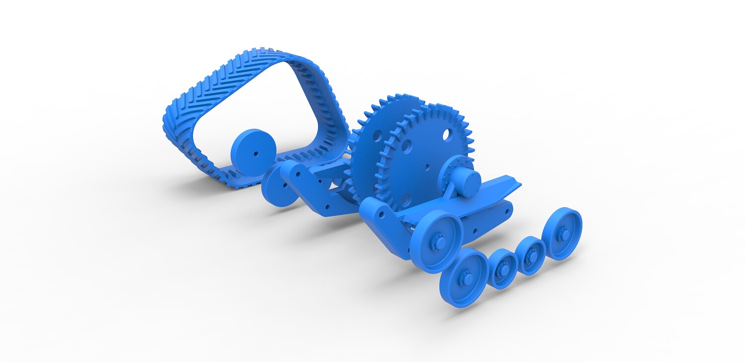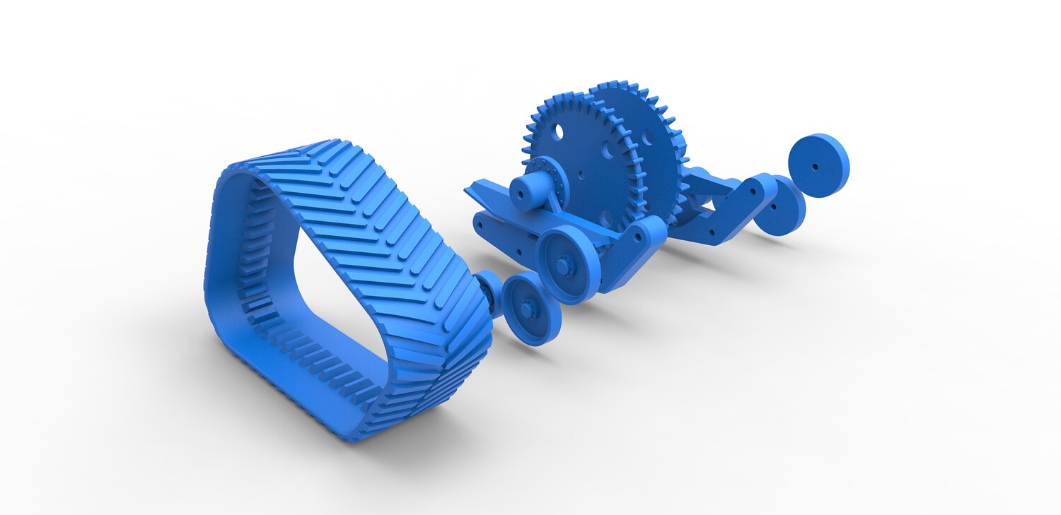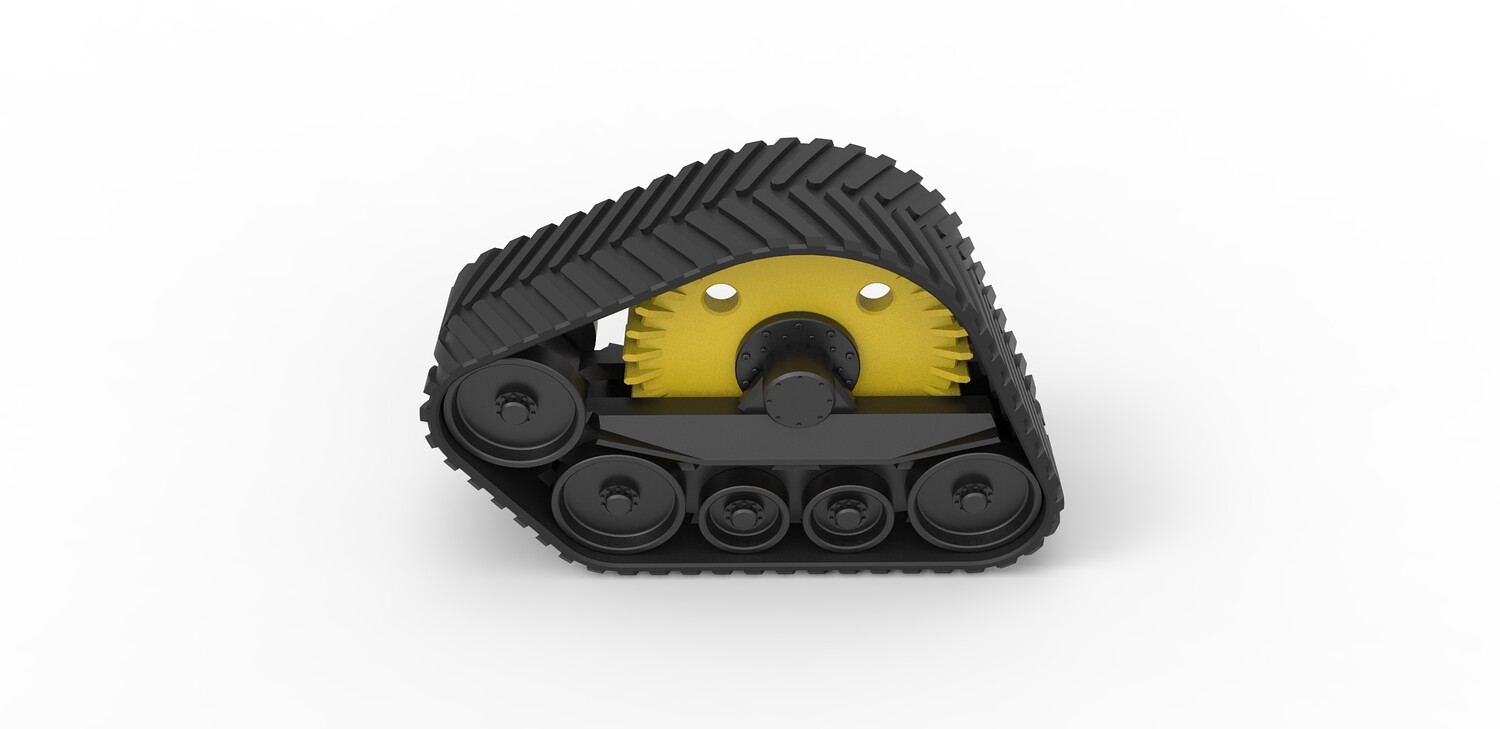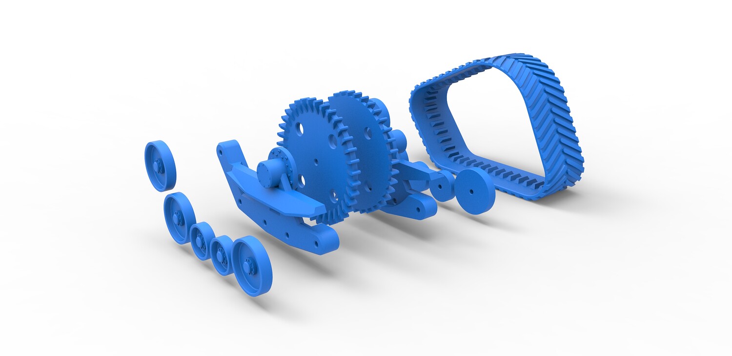 The model consists of parts: Big rollers, Inner part, Outer part, Rubber track, Small rollers, Wheels.