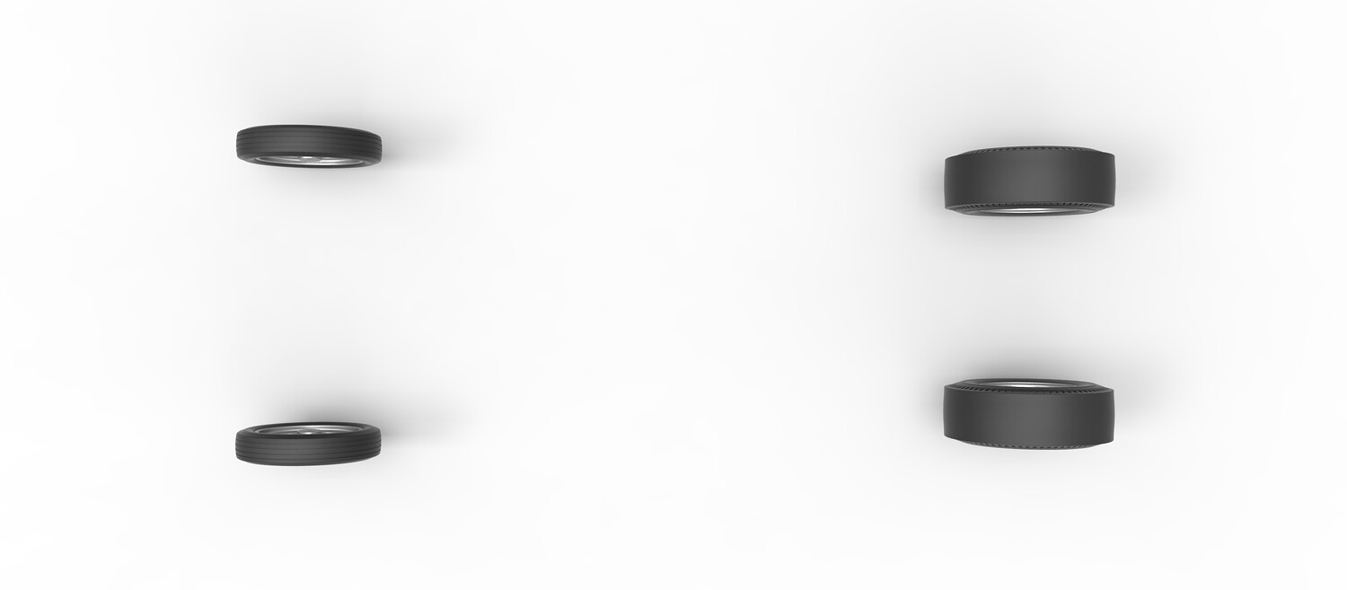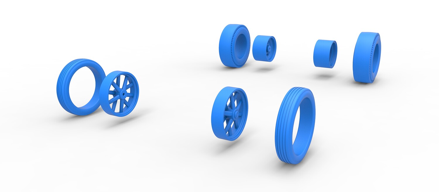 Model dimensions: - Front wheel outer diameter - 24 mm - Front wheel width - 5.2 mm - Rear wheel outer diameter - 28 mm - Rear wheel width - 10 mm