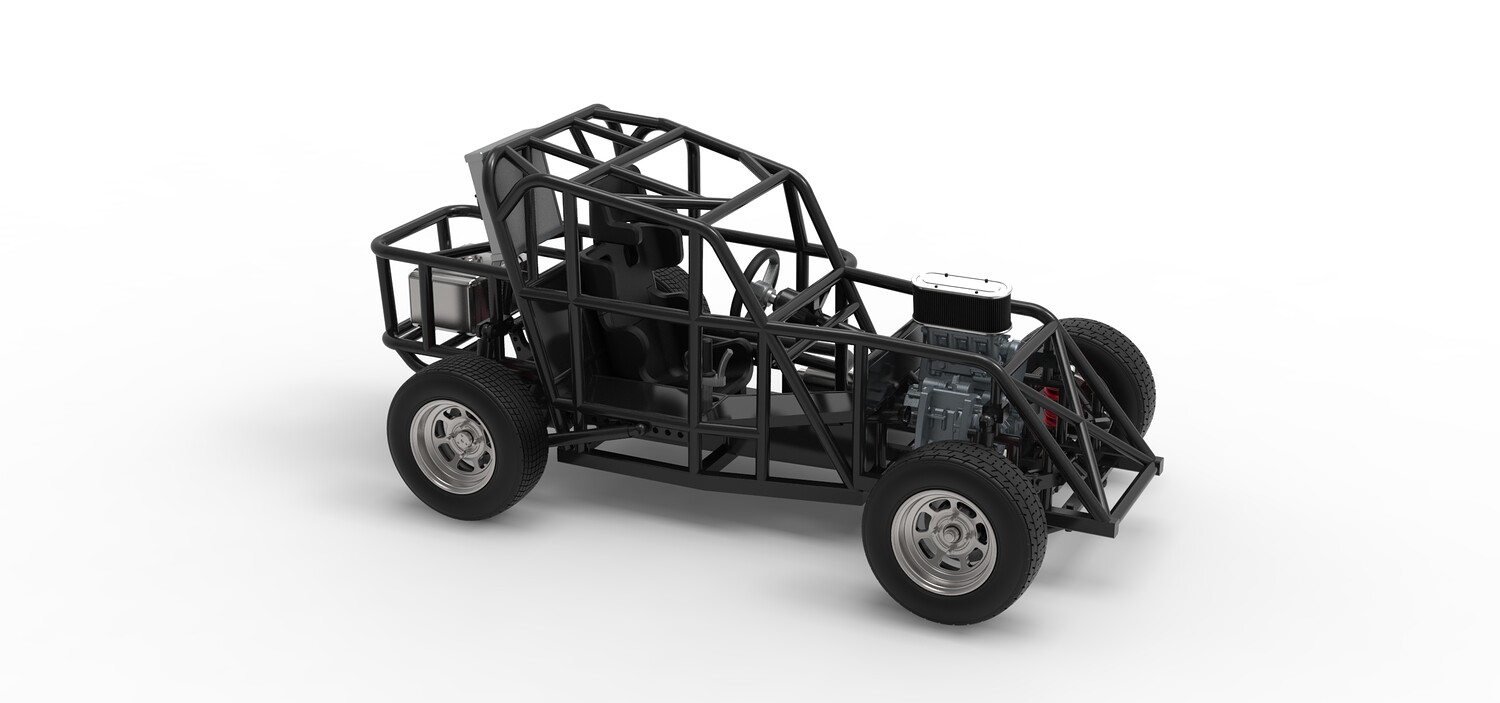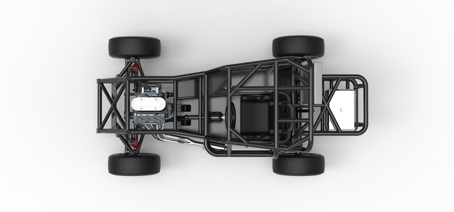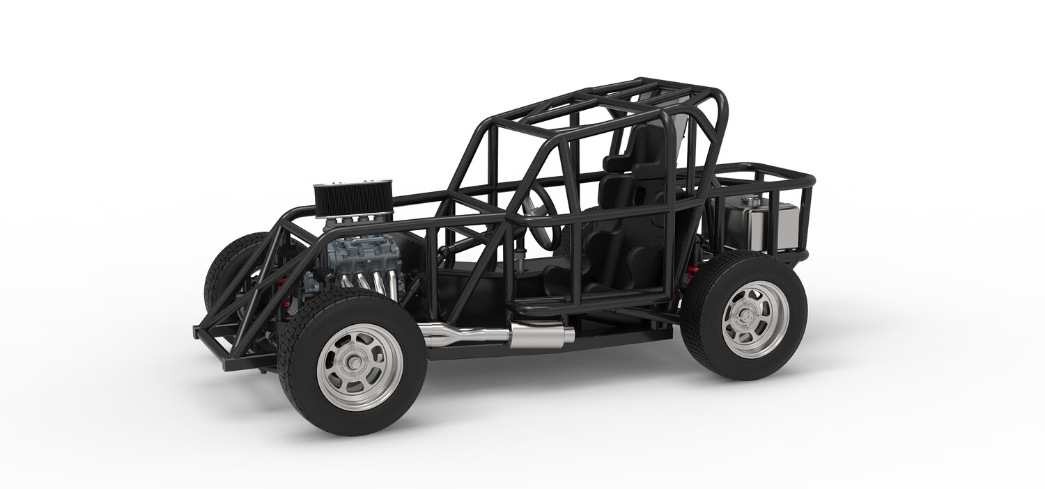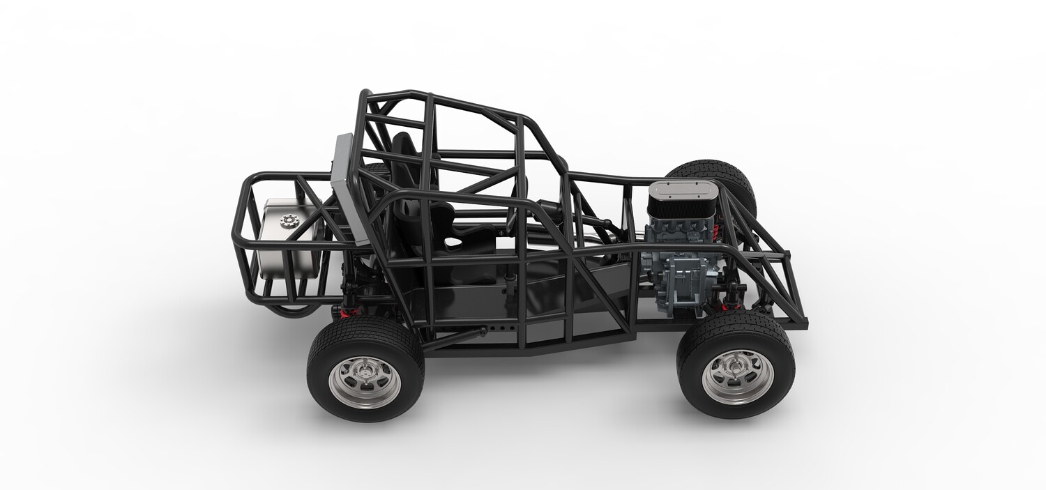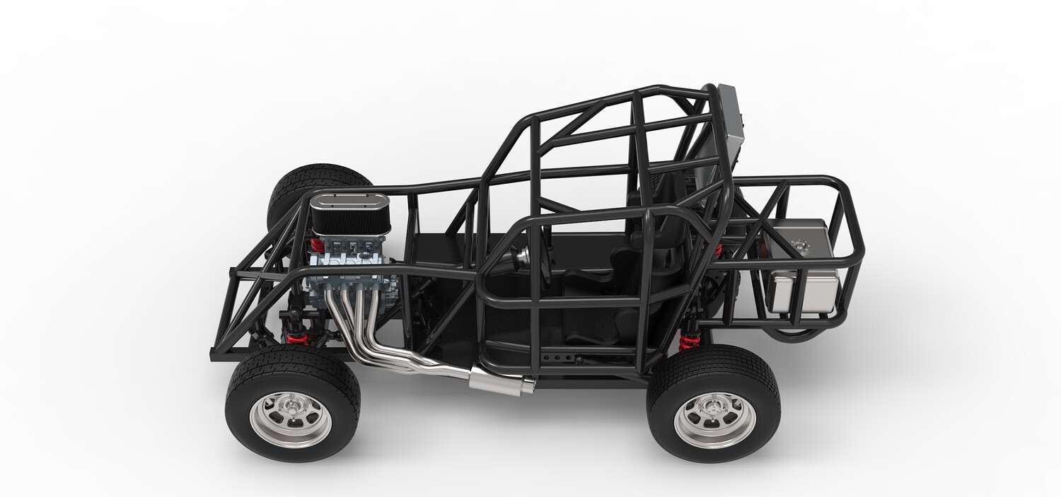 The model consists of parts: Air filter, Engine, Exhaust, Fan, Frame, Front rims, Front tires, Radiator, Rear rims, Rear tires, Seat part 1,2, Shifter, Steering wheel, Tank.