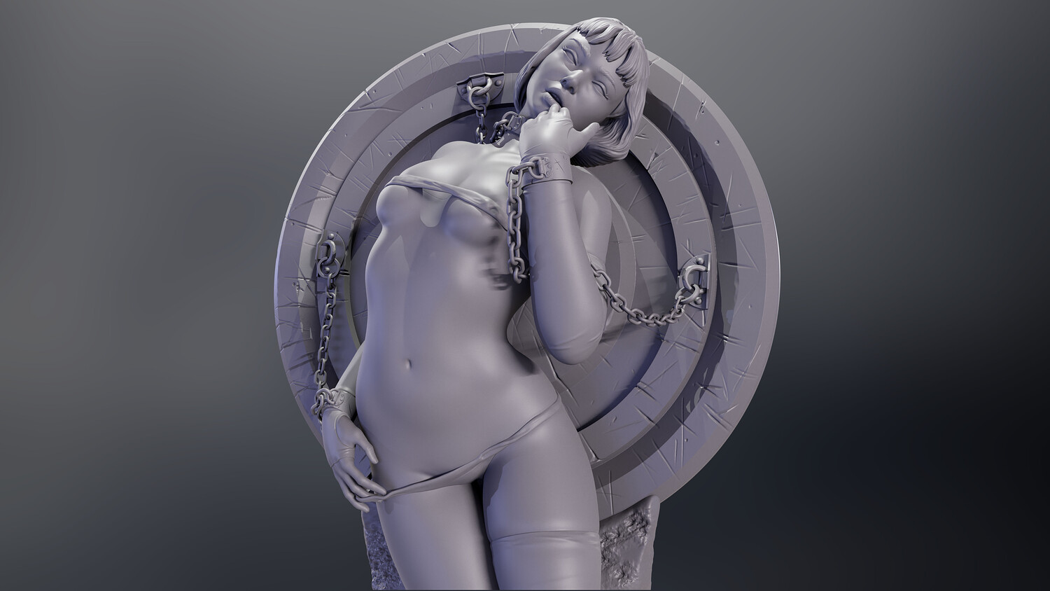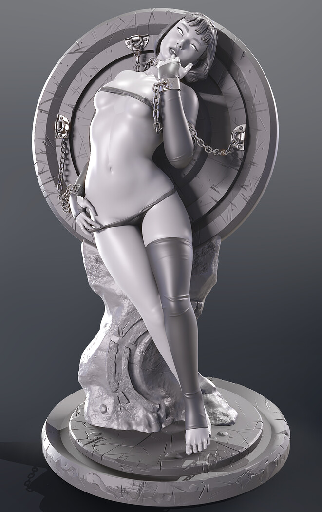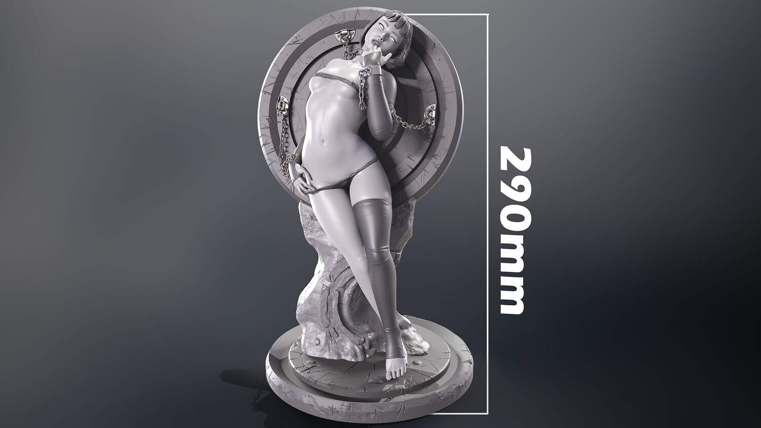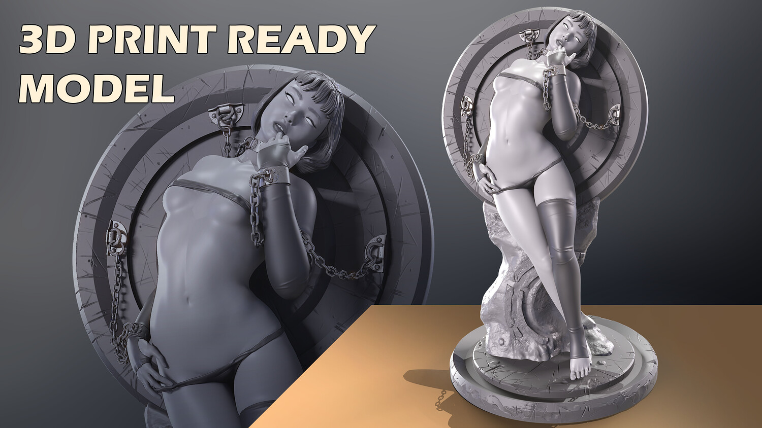 3D model based on a painting from famous Spanish artist Luis Royo. Ready to print. With different versions of files, cut in parts or whole parts for easy printing. The chain was tricky to figure out. Use the presupported chain version or use your own supports. Cut the preferred length of the chain if it's too big. To connect the chains, see the reference picture.