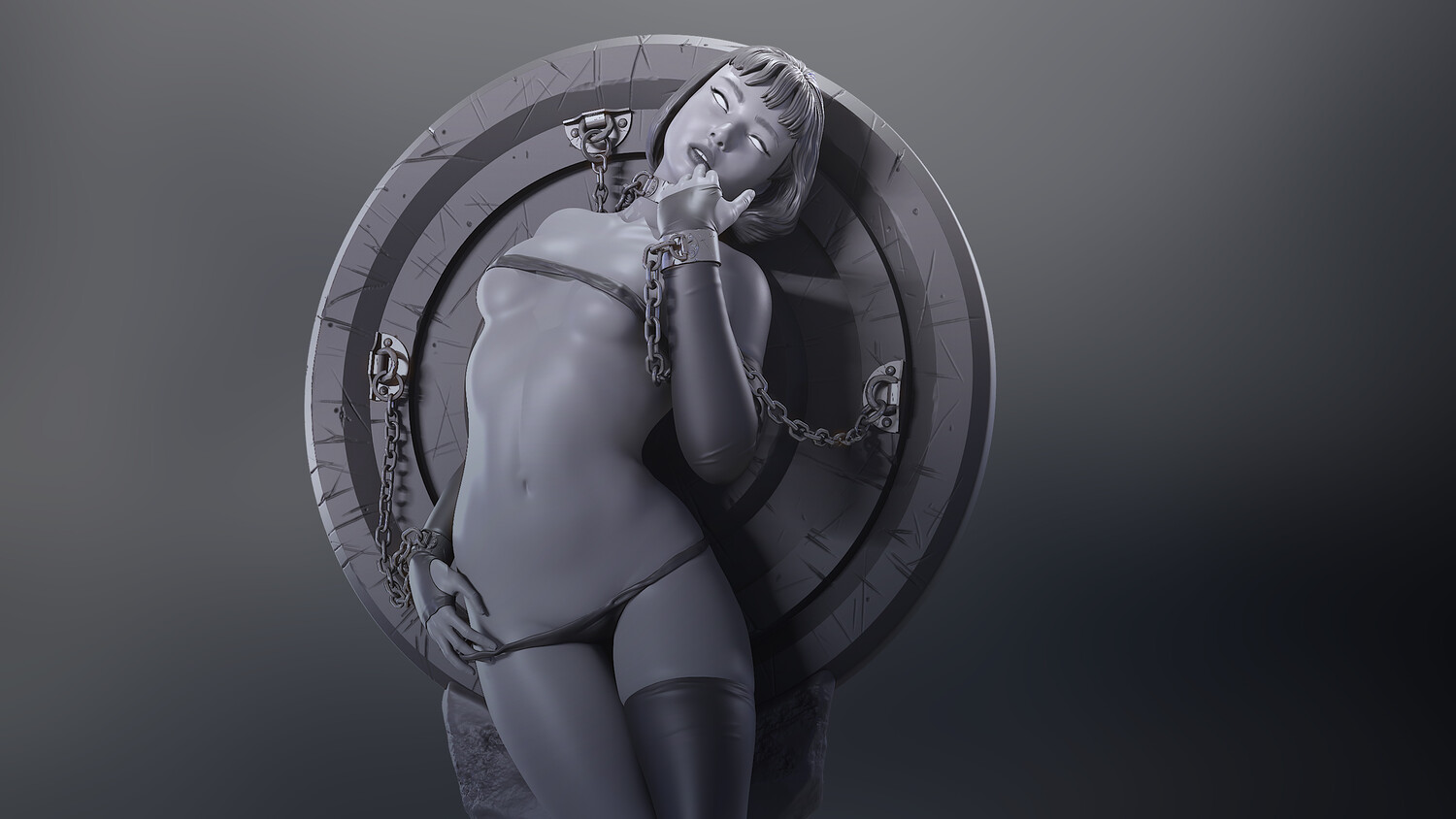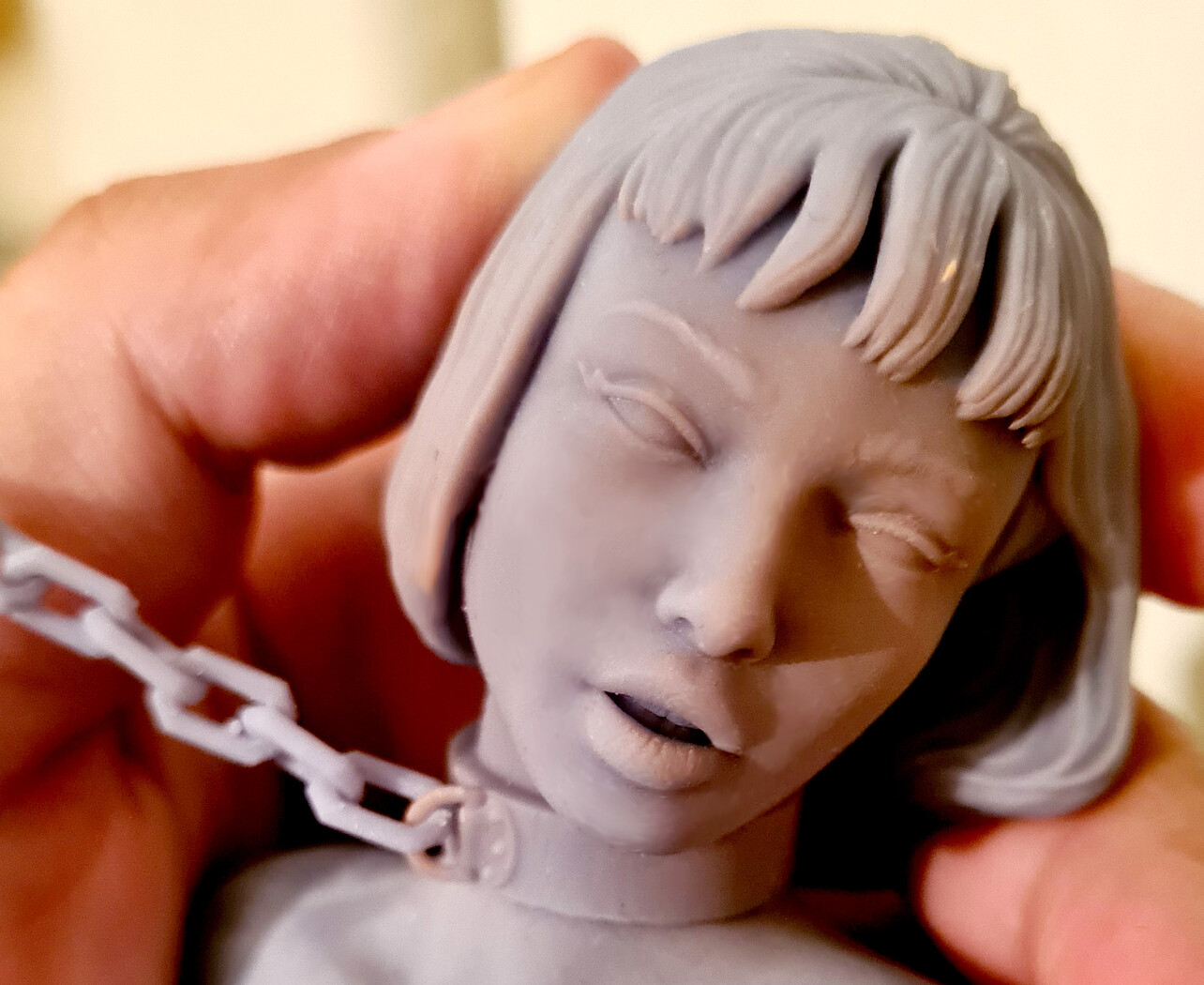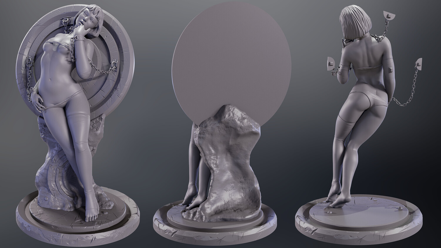 3D model based on a painting from famous Spanish artist Luis Royo. Ready to print. With different versions of files, cut in parts or whole parts for easy printing. The chain was tricky to figure out. Use the presupported chain version or use your own supports. Cut the preferred length of the chain if it's too big. To connect the chains, see the reference picture.