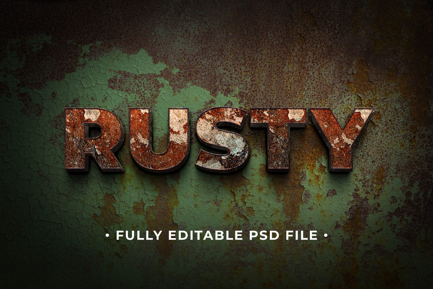Rust Metal PSD Fully Editable Text Effect. Layer Style PSD Mockup Template
