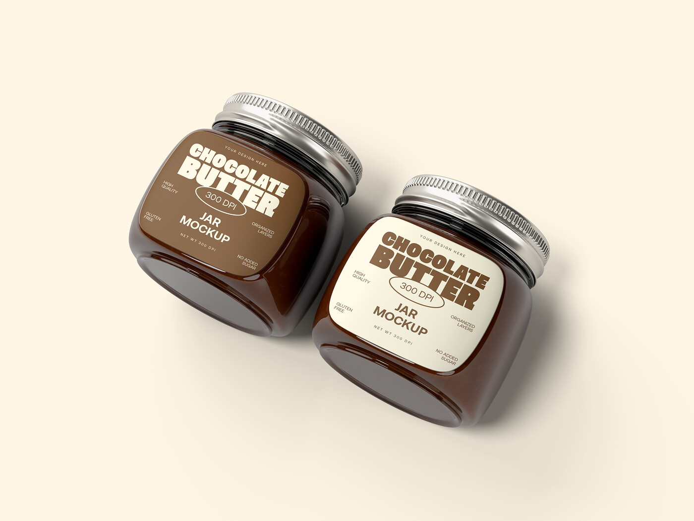 Dual Chocolate Nut Butter Jar Mockup PSD Template
