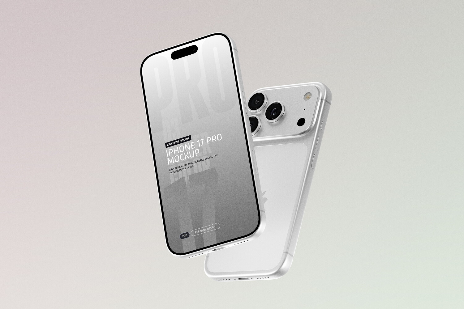 Dual iPhone 17 Pro Mockup PSD Template - Floating Devices