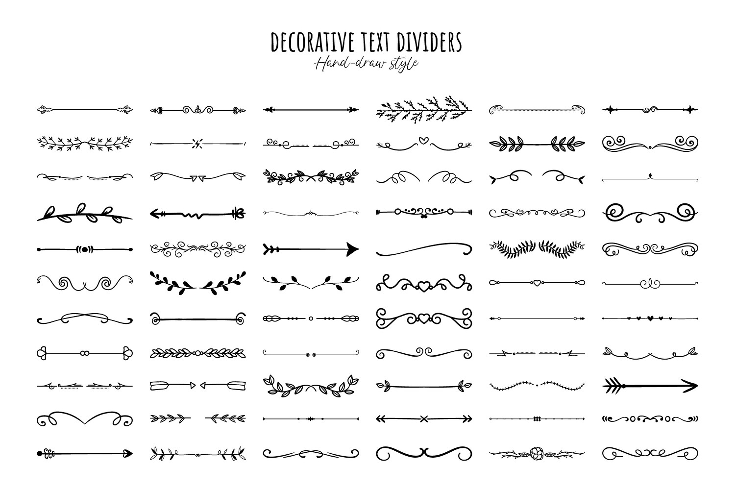 Hand-Drawn Decorative Text Dividers, Elegant Ornamental Lines, EPS Vector File