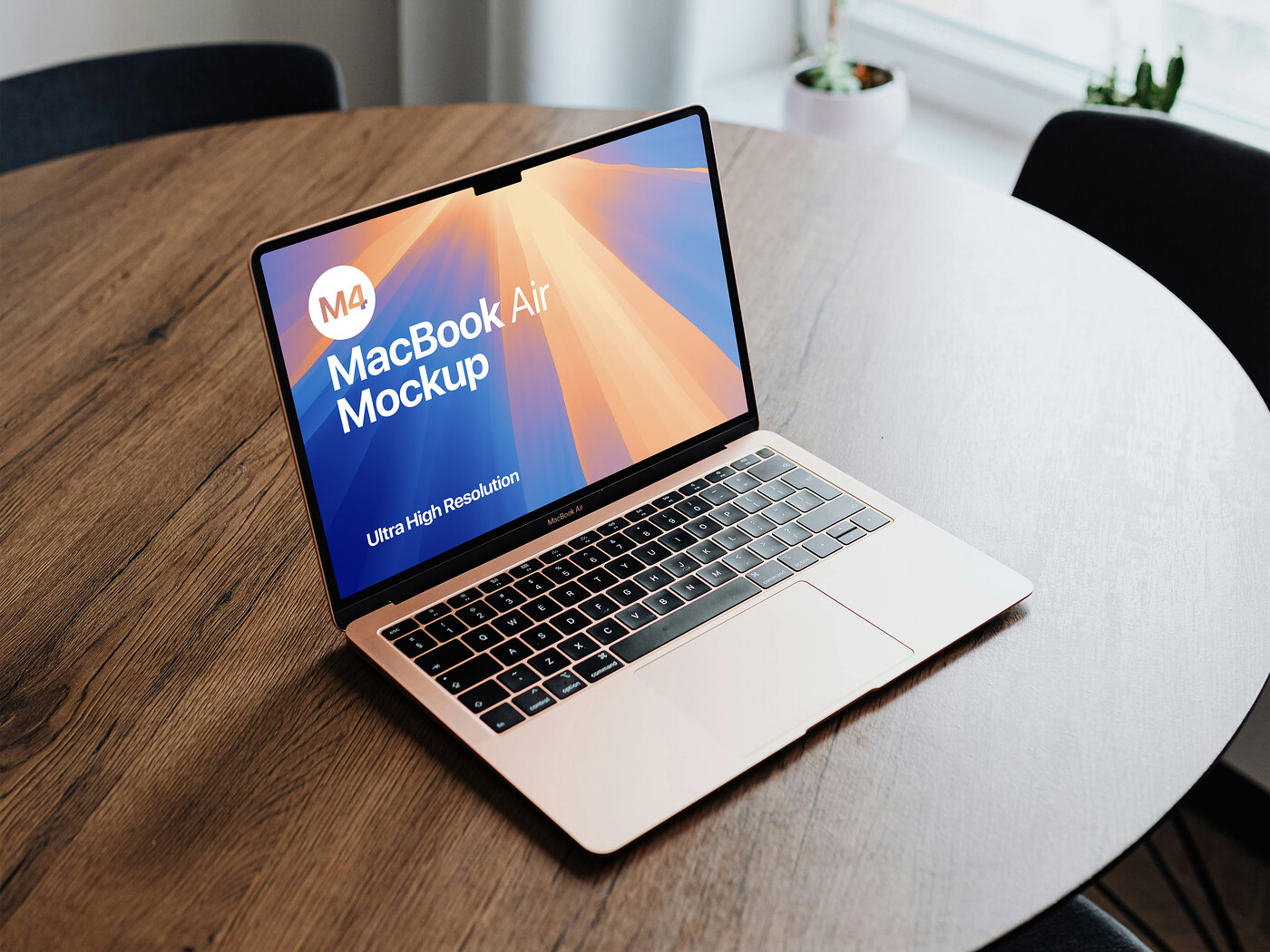 M4 MacBook Air Mockup PSD Template - Tabletop View