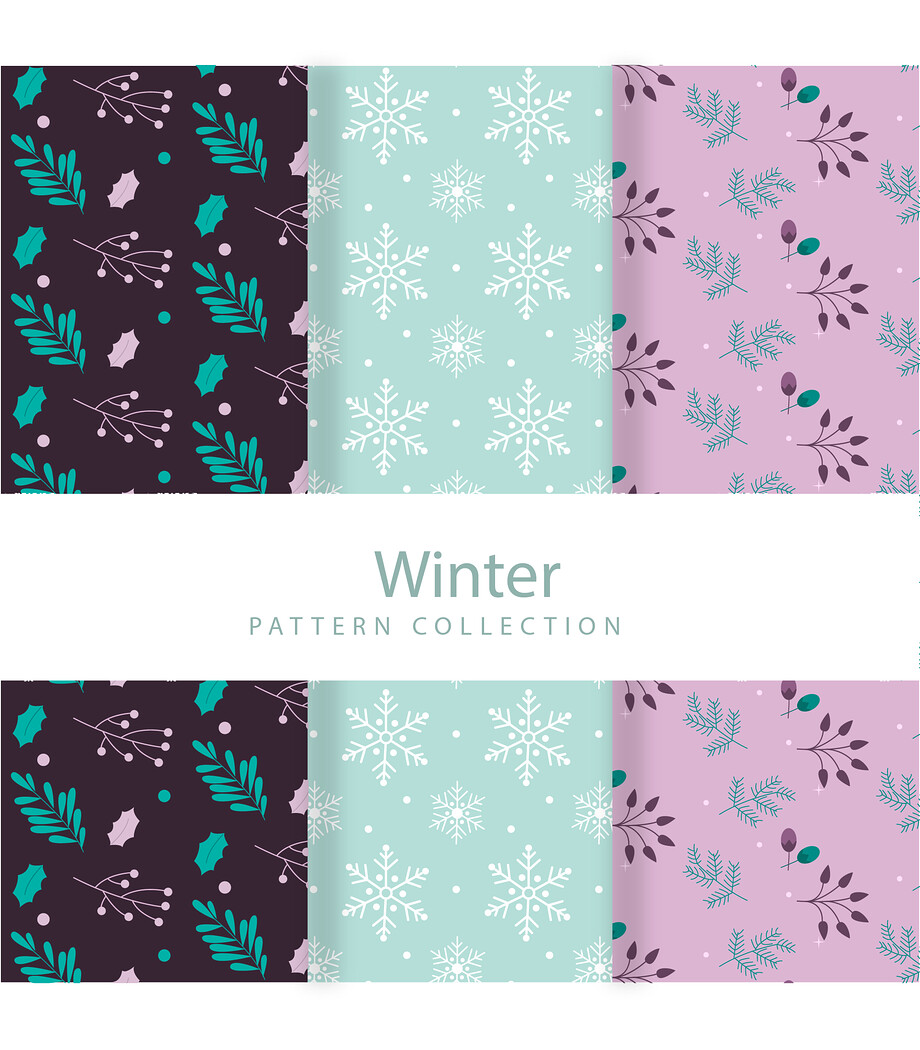 3 Leaves snowflakes winter patterns, Vector Seamless Texture, EPS File.