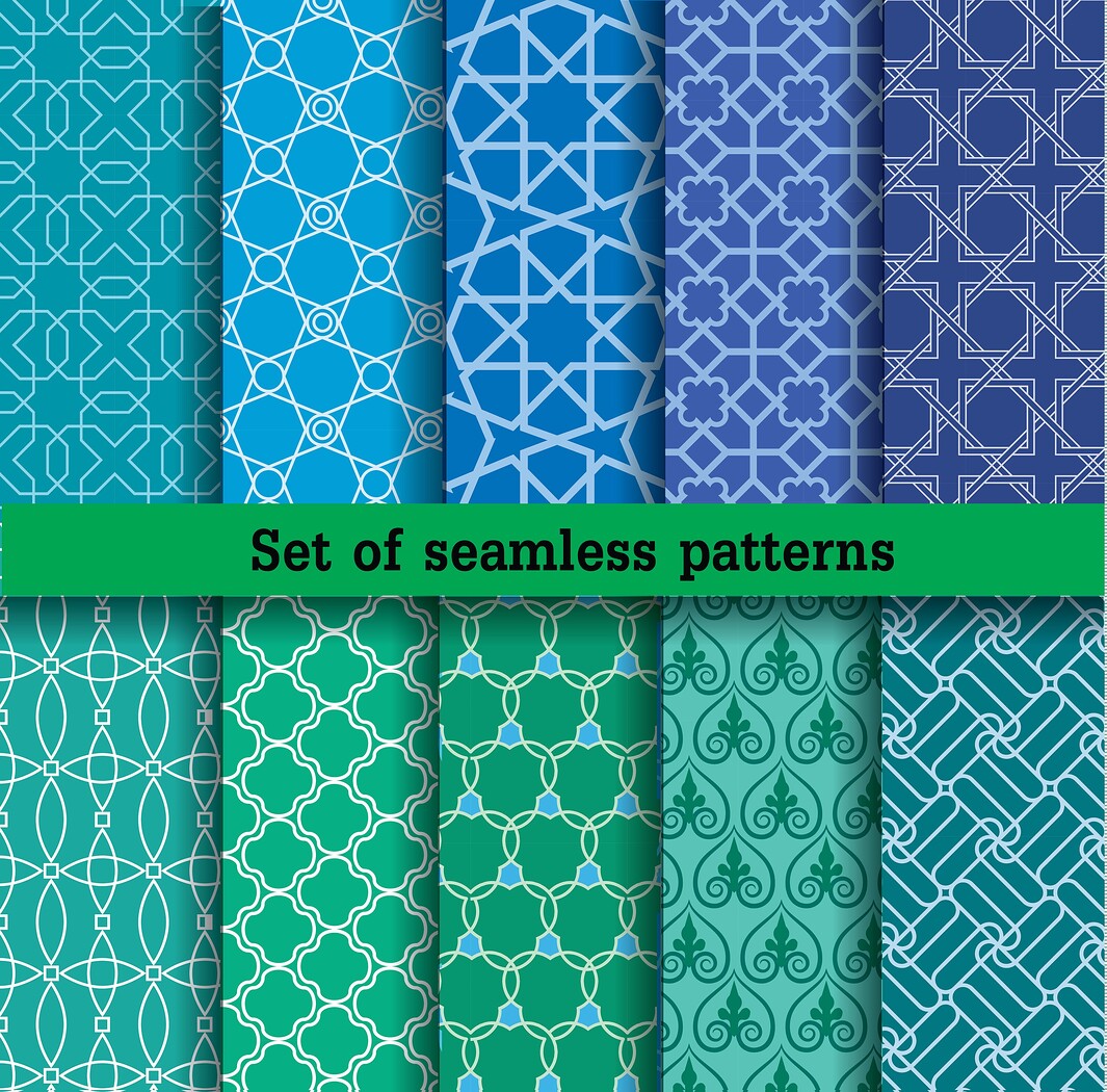 10 Blue Green pattern Vector Seamless Texture, EPS File.