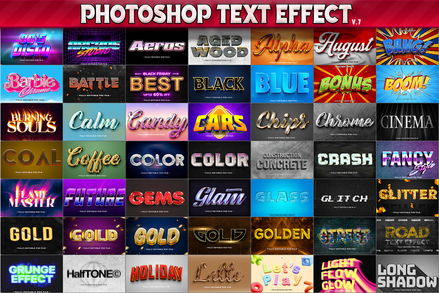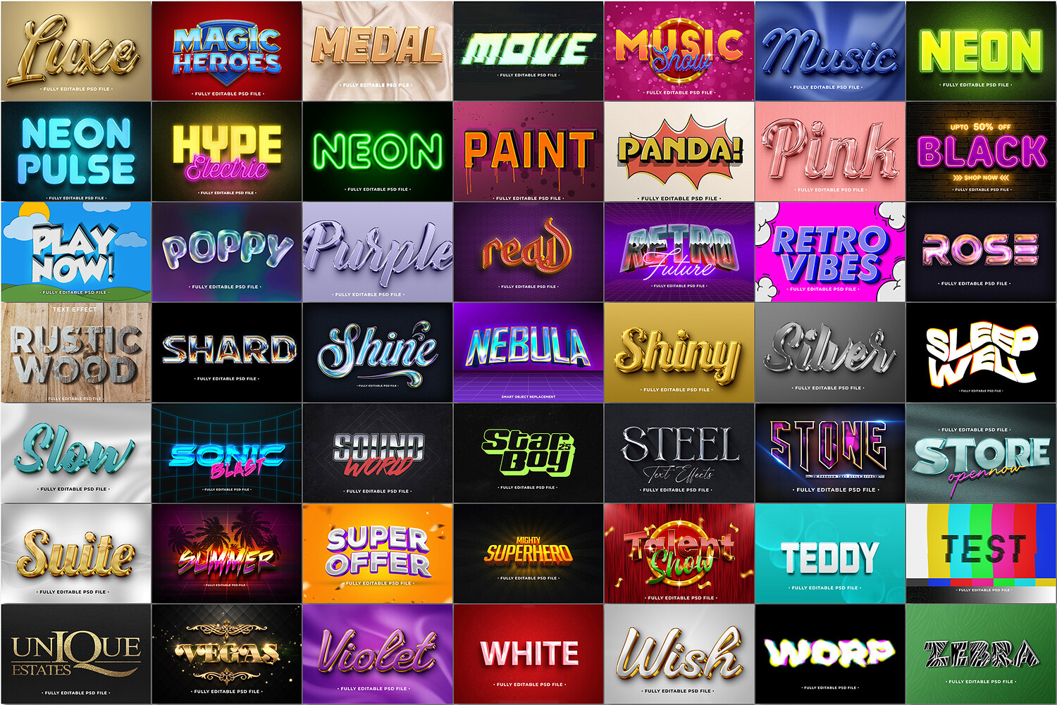 100 Premium Photoshop Text Effects, 3D Fully editable text effects, Layer styles, PSD Text Mockup
