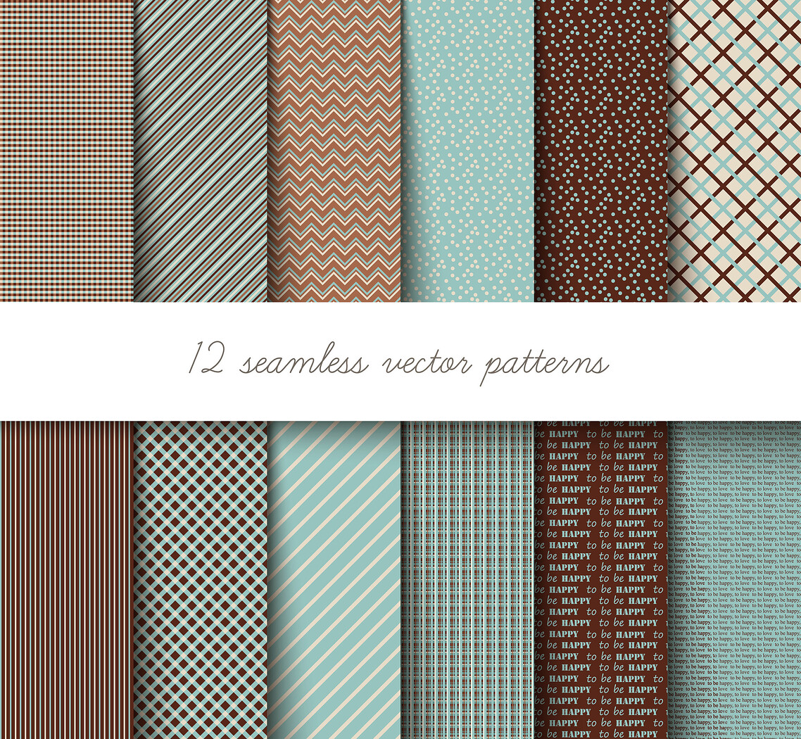12 Geometric Teal Brown Patterns, Vector Seamless Texture, EPS File.