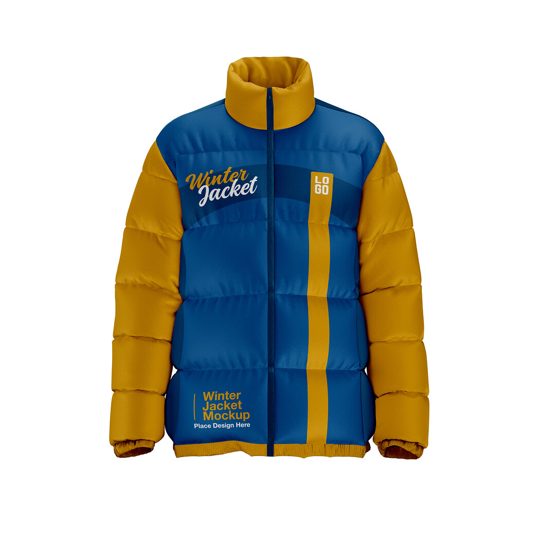 Winter Puffer Jacket Mockup PSD Template - Modern Two-Tone Quilted Outerwear