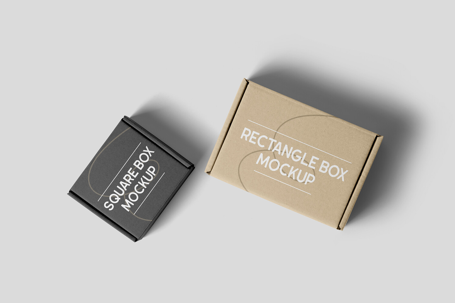 Showcase your e-commerce packaging, subscription box design, or product branding with this realistic Cardboard Mailer Boxes Mockup PSD Template. This high-quality, top-down (flat lay) perspective features two types of cardboard boxes—one square and one rectangular. It's perfect for presenting designs for shipping boxes, custom packaging, or retail boxes. You can easily customize the color and add your branding to both boxes using the smart objects in the PSD file.