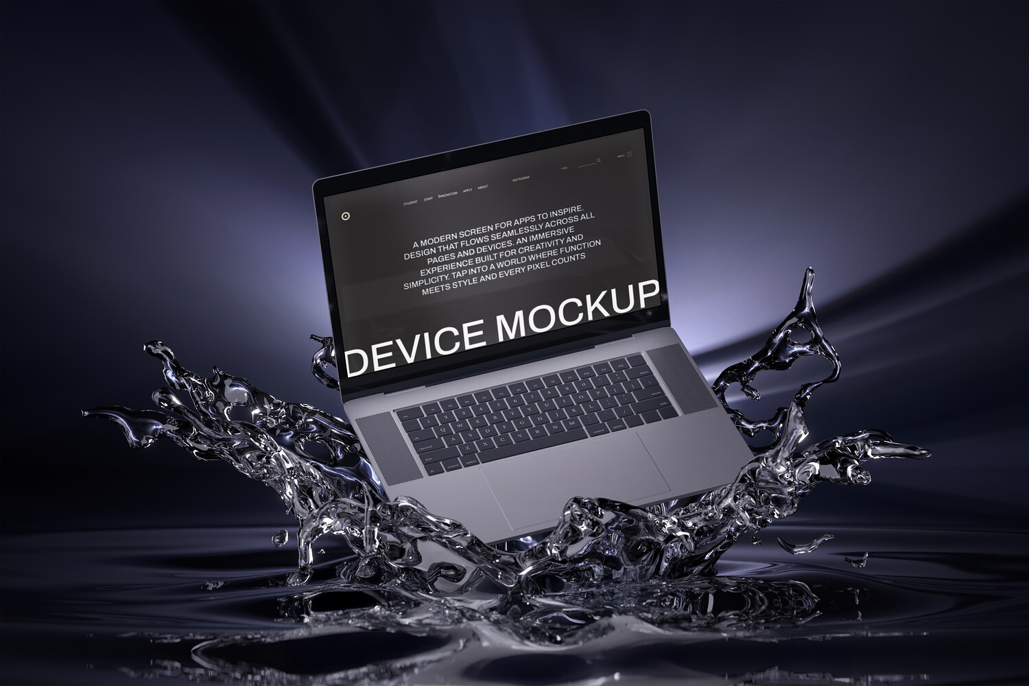 Laptop Mockup with Water Splash - Dynamic Device Display
