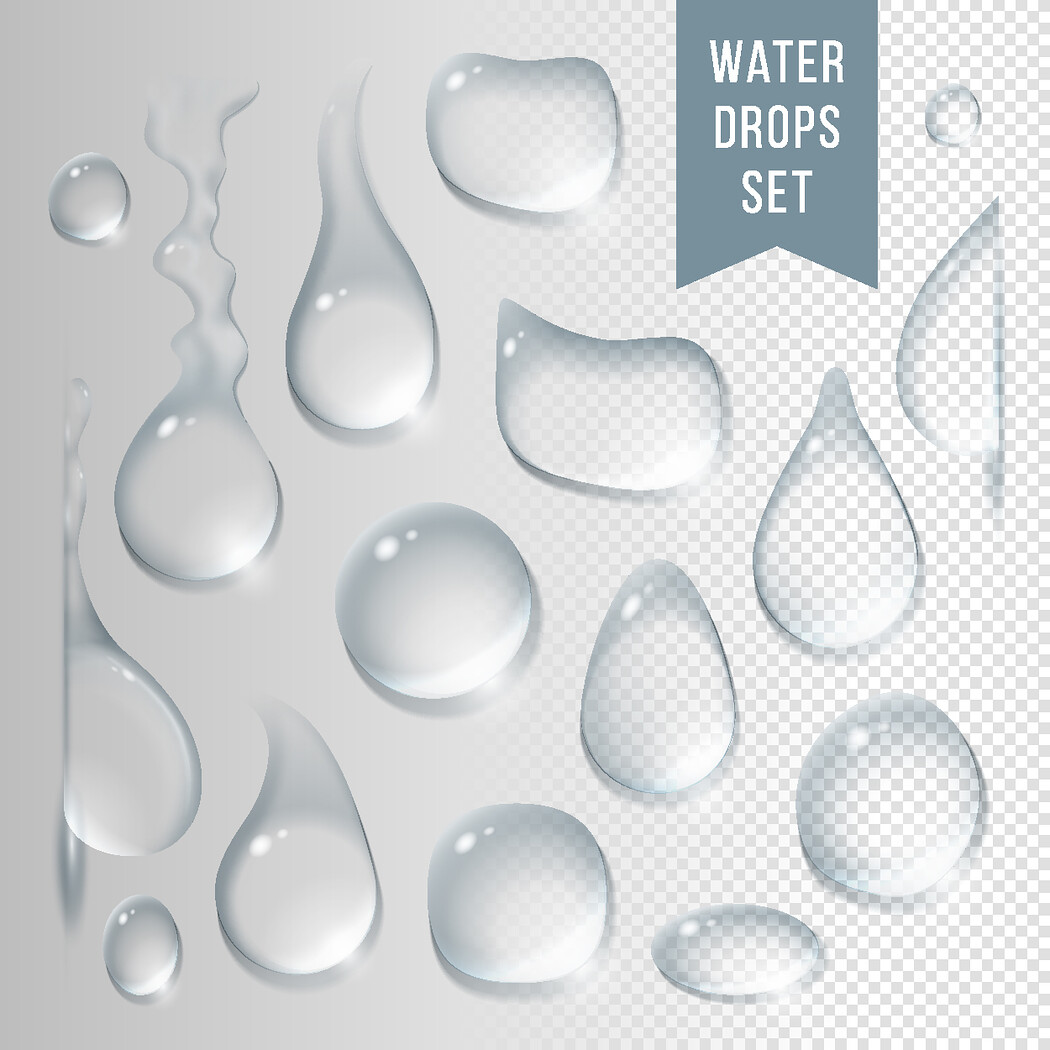 Crystal Clear Water Droplets, Aqua Liquid, Pure, Clean Drops, EPS File