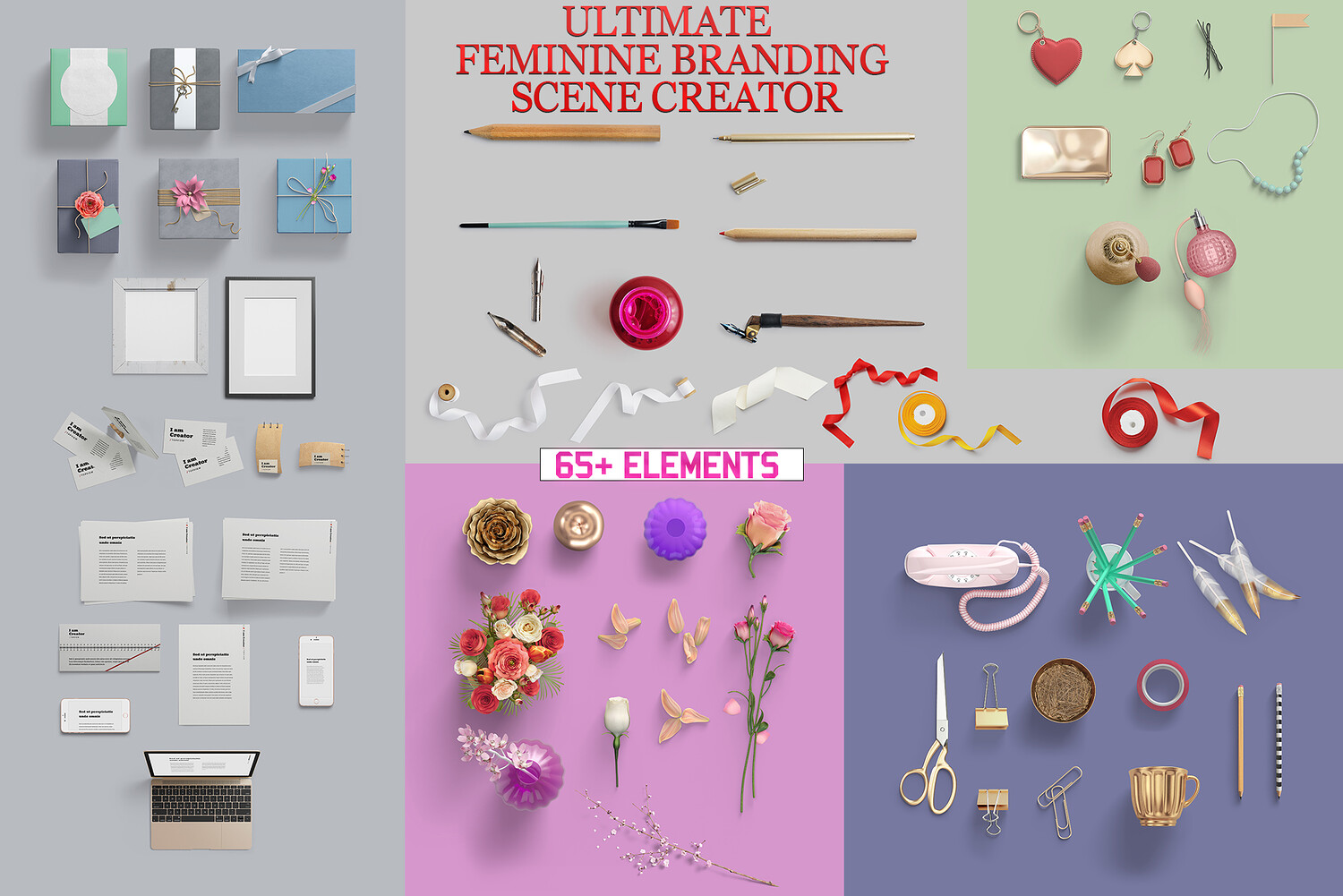 Ultimate Feminine Branding Scene Creator PSD Templates, Isolated Objects, Florals, Beauty